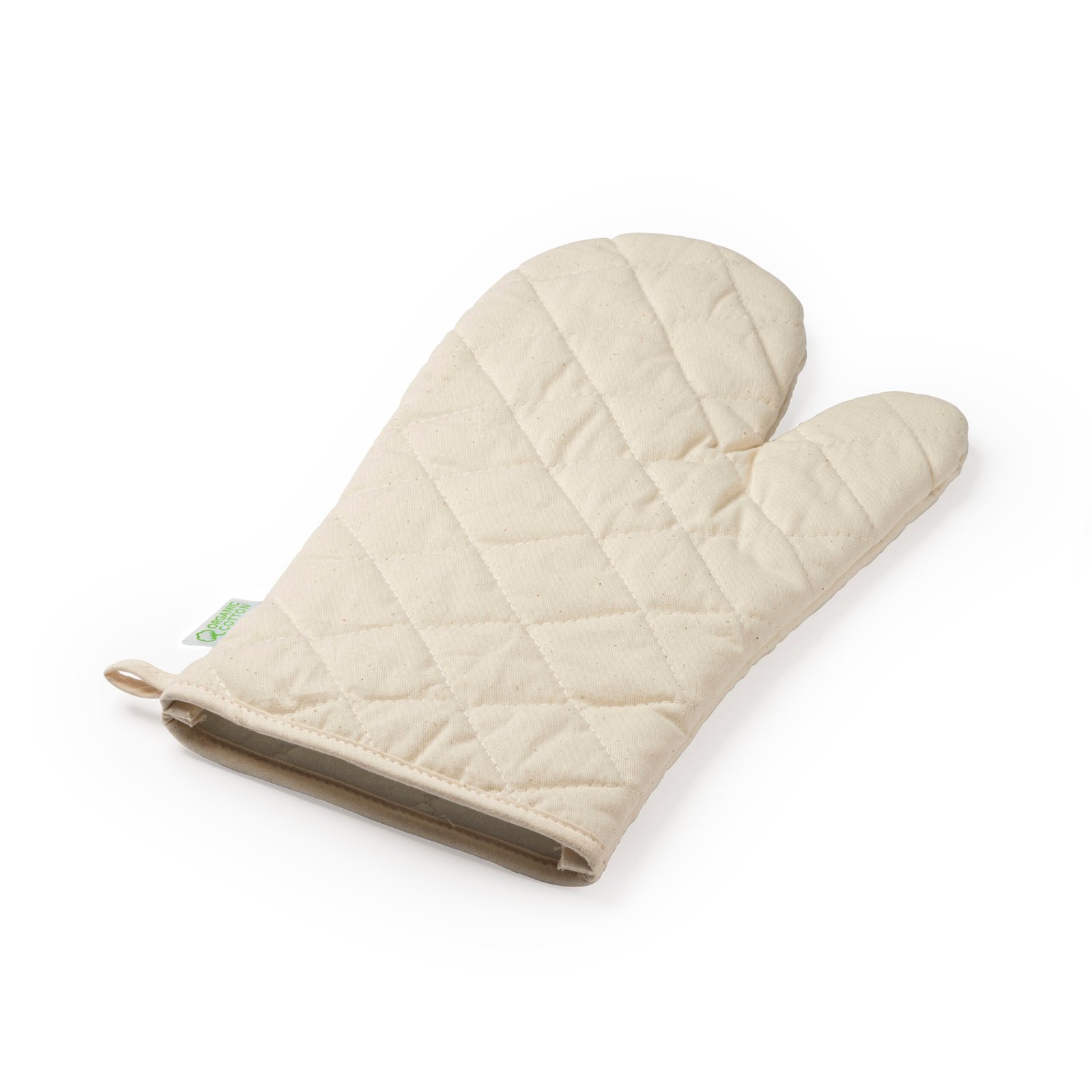 Manopla ecológica elaborada de 100% de algodón orgánico. Práctica y cómoda para el uso diario. Cuenta con una cara lisa ideal para marcaje y cinta para colgar.