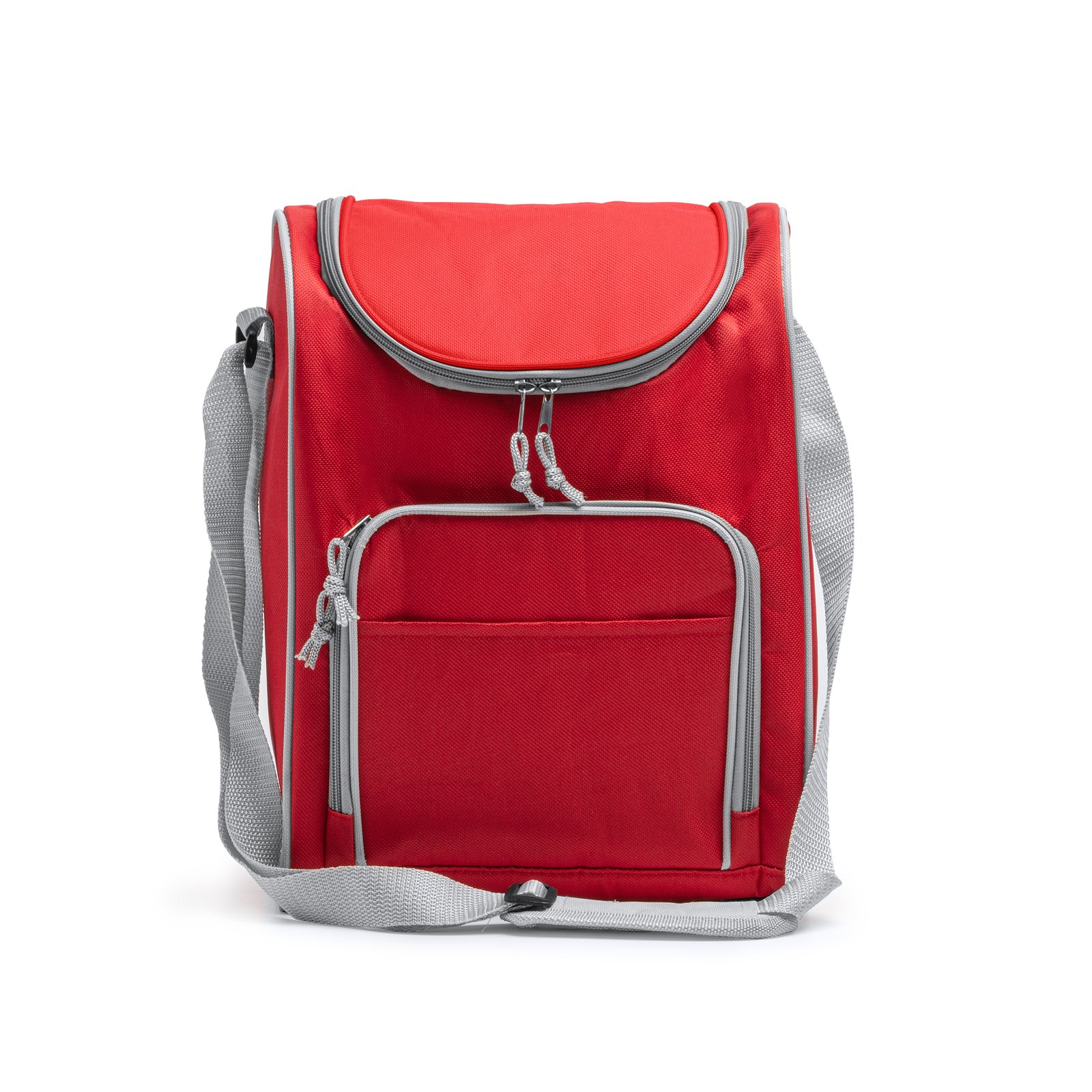 Nevera multiusos de poliéster 600D. Bolsillo principal isotérmico y práctico bolsillo frontal perfecto para almacenar comida o bebida y mantener su temperatura ideal. Incluye cinta de transporte ajustable.