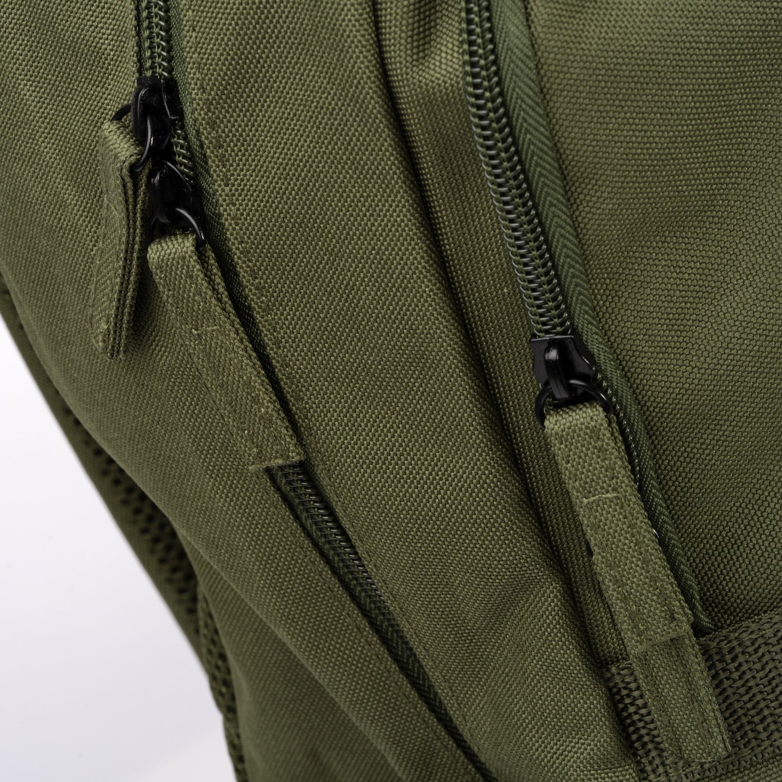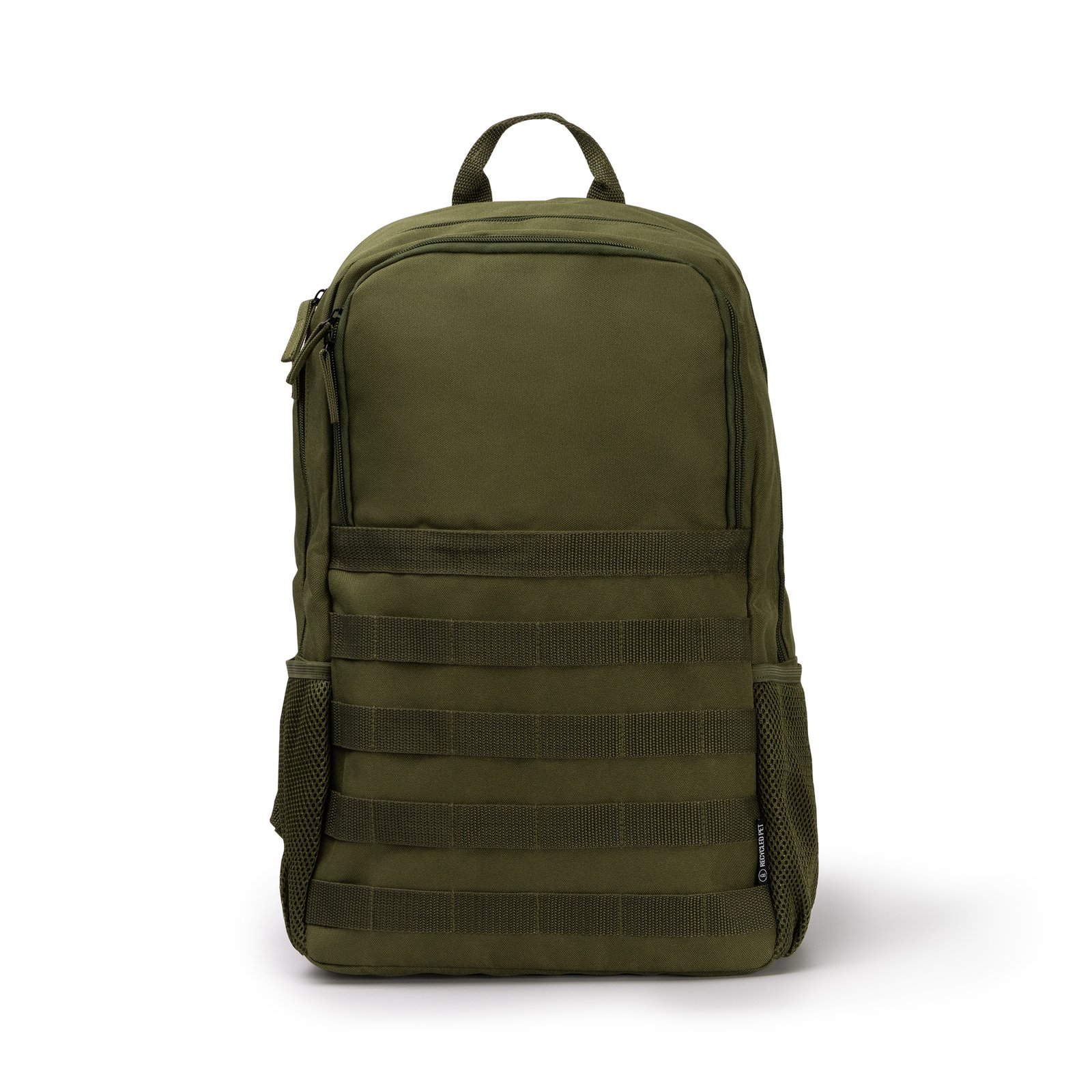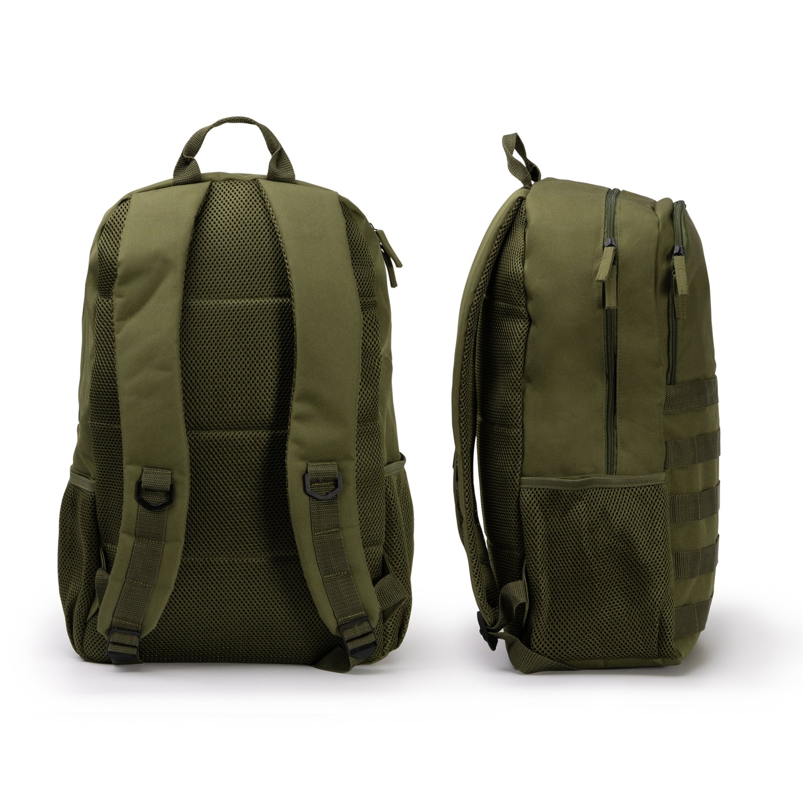 Mochila elaborada en resistente poliéster RPET 900D de espalda acolchada. En su compartimento principal incorpora en su interior un bolsillo acolchado para portátil de hasta 15″ y otro para transporte de pequeños y medianos enseres. Con bolsillo frontal y dos bolsillos laterales con diseño microperforado con mosquetón asegurando su ajuste y seguridad.