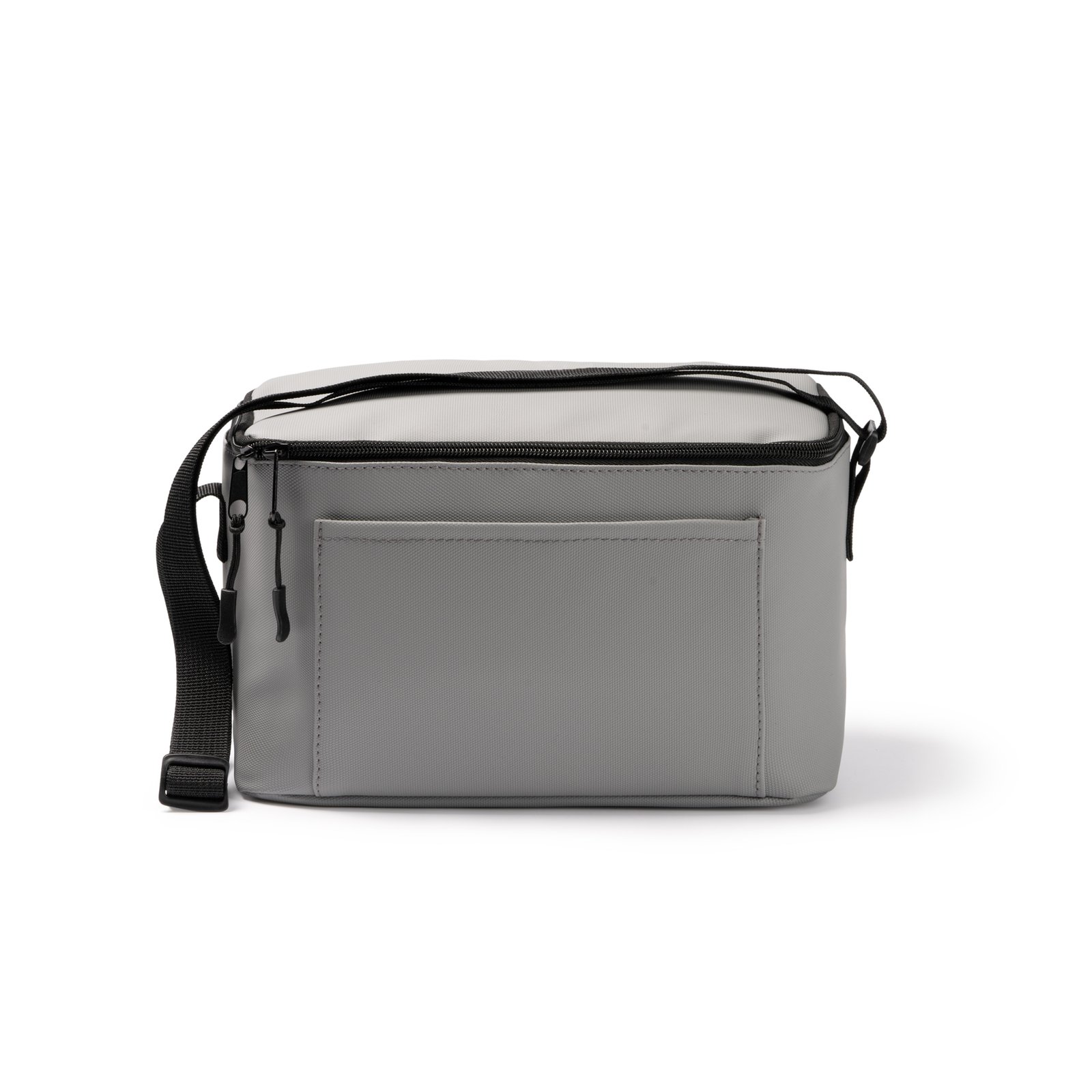 Nevera realizada en PU Leather y 300D RPET con interior isotérmico. Gran compartimento principal y bolsillo exterior con cierre de