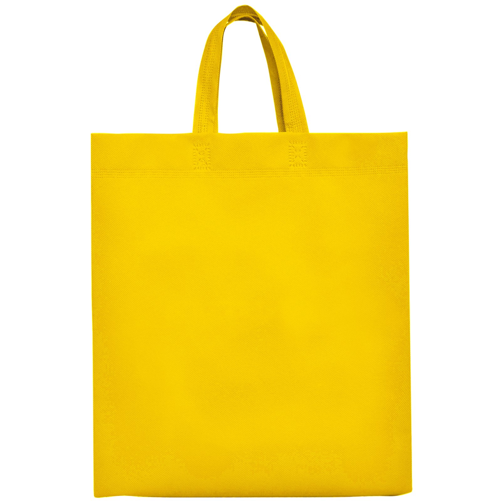 Bolsa termosellada con fuelle en los laterales y en la base, fabricada en tejido non-woven (no tejido), con asa corta de cinta en el mismo color.