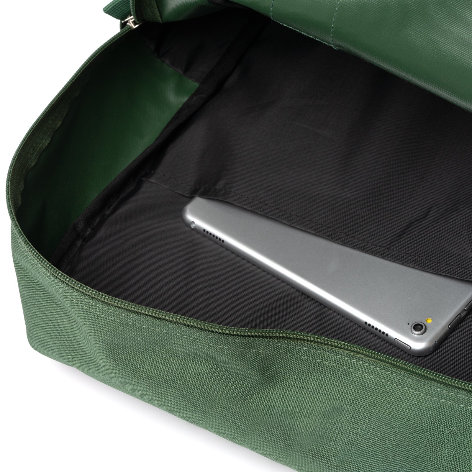 Mochila de RPET 600D con un compartimento principal. En su interior cuenta con un bolsillo para transporte de portátil de hasta 16″. En el exterior incorpora un compartimento frontal con cierre de cremallera, doble asa para transporte en la parte superior y asas y espalda acolchadas.