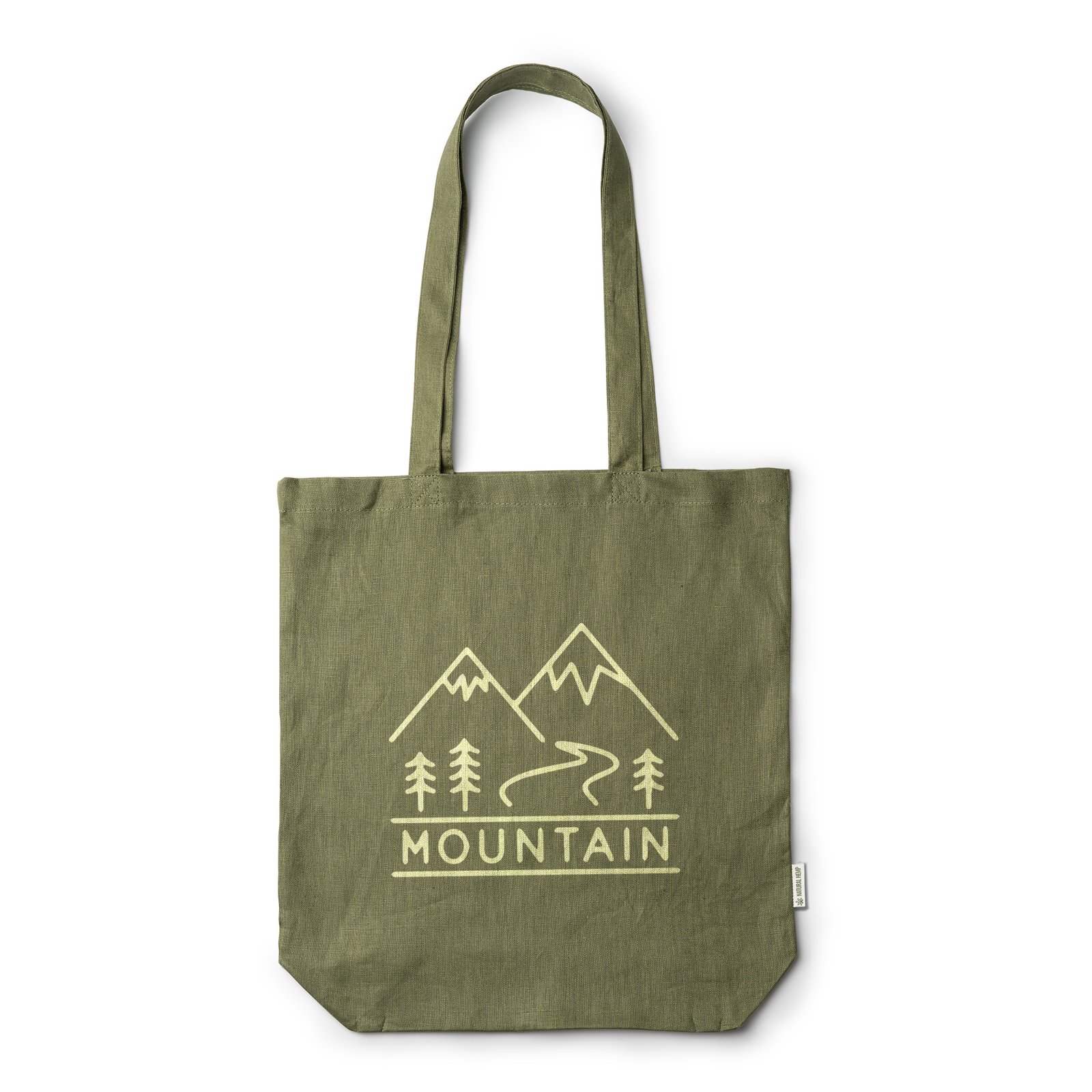 Bolsa realizada en tela de cáñamo con fuelle. Asas largas reforzadas de 70 cm perfecta para realizar la compra de manera cómoda.