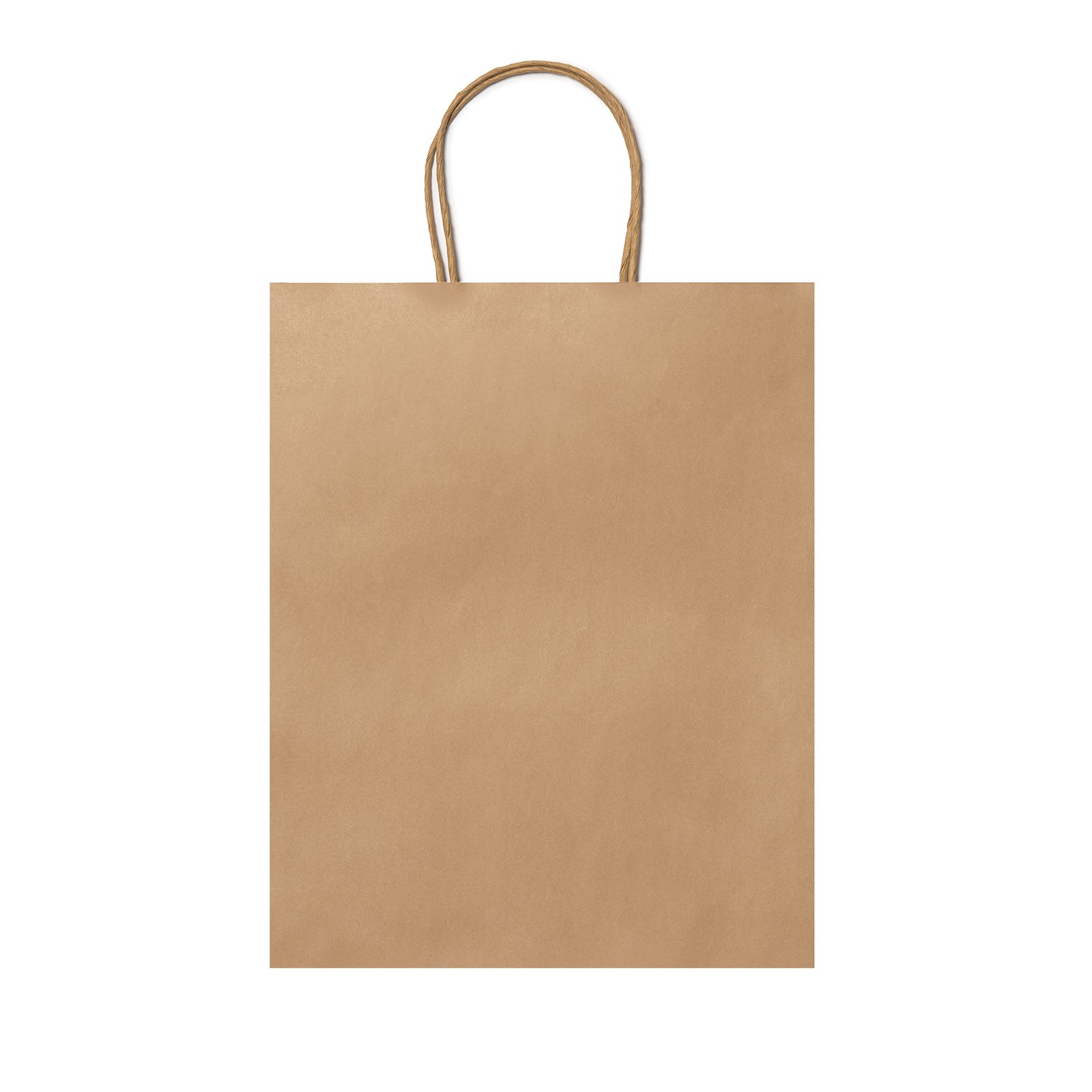 Bolsa de papel en acabado natural 110 g/m². Asa cortas reforzadas en diseño rizado.