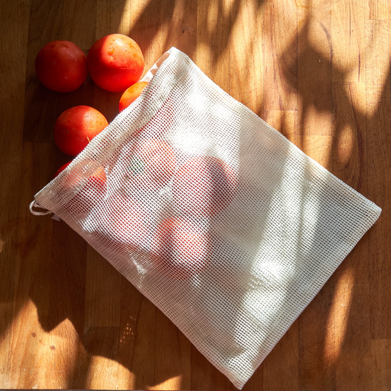 Bolsa multiusos ideal para la compra, de línea eco 100% algodón en color natural. Un lado de la bolsa en algodón suave y otro lado en ligera rejilla. Cierre de cordón y ajustador de plástico transparente.