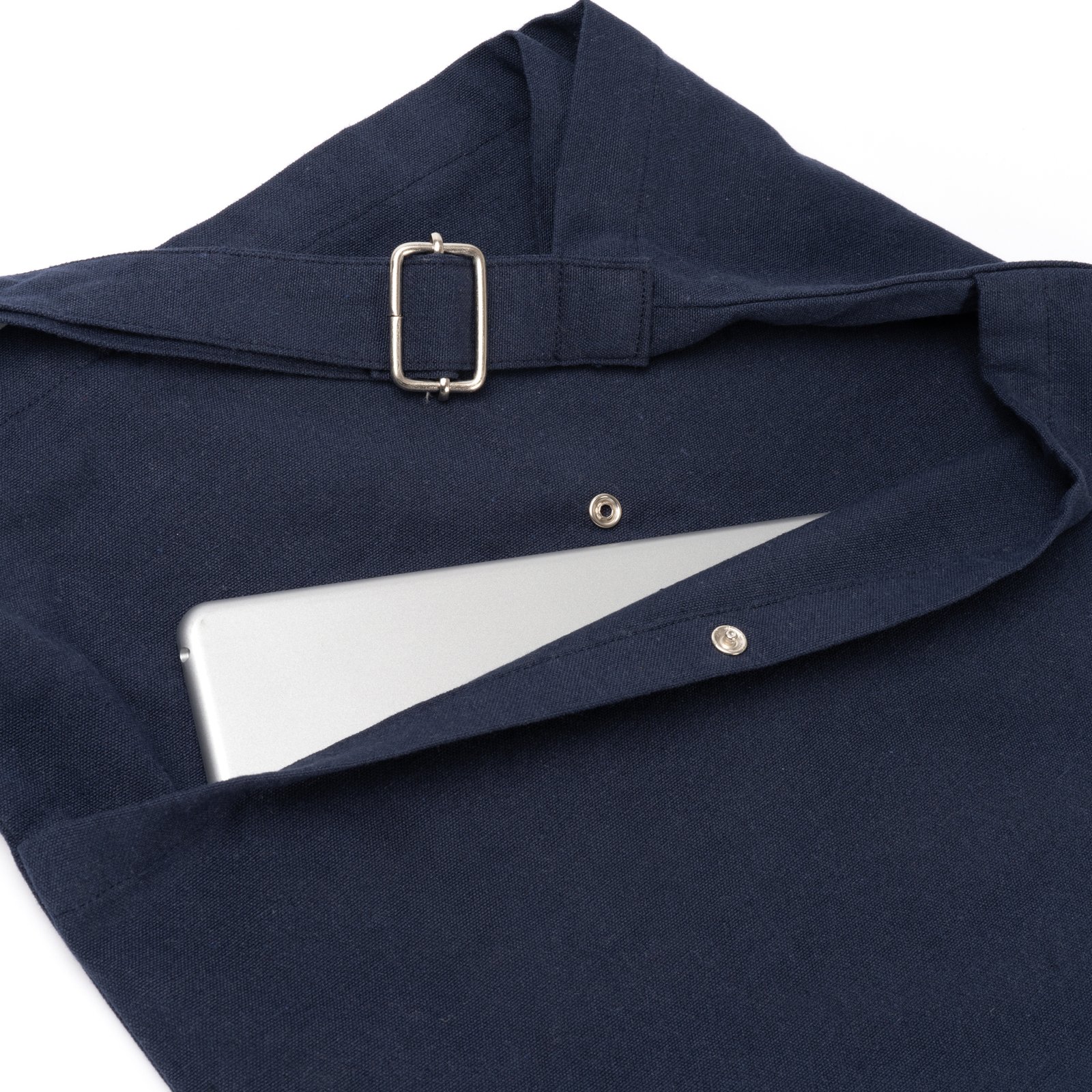 Bolsa petate realizada en algodón reciclado de 240 g/m². Cuenta con un compartimento principal amplio, además de un bolsillo frontal con cierre de botón y bolsillo interior para el almacenamiento de pequeños objetos. Cuenta con un asa ajustable para mayor comodidad y versatilidad en el transporte, adaptándose a diferentes medidas de longitud.
