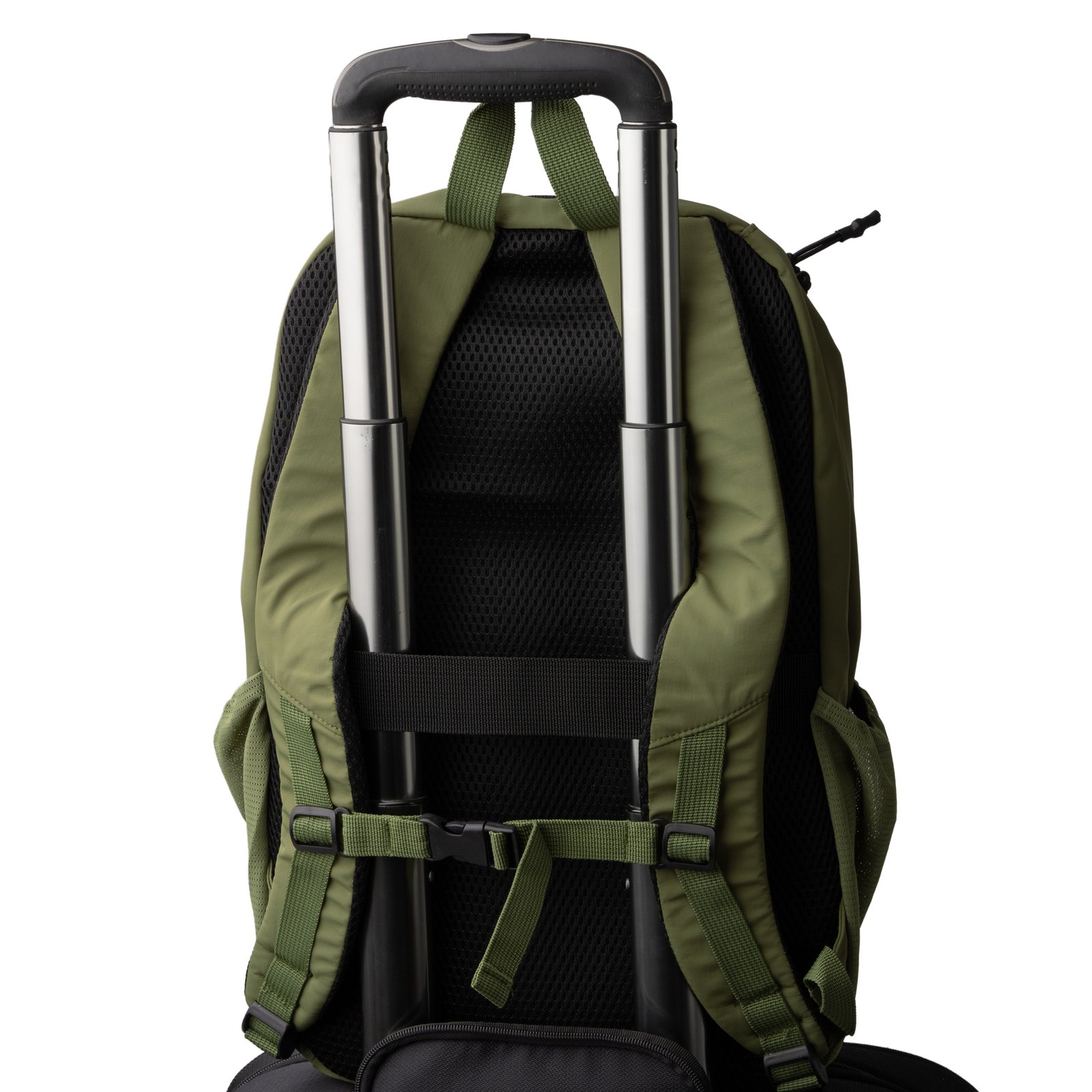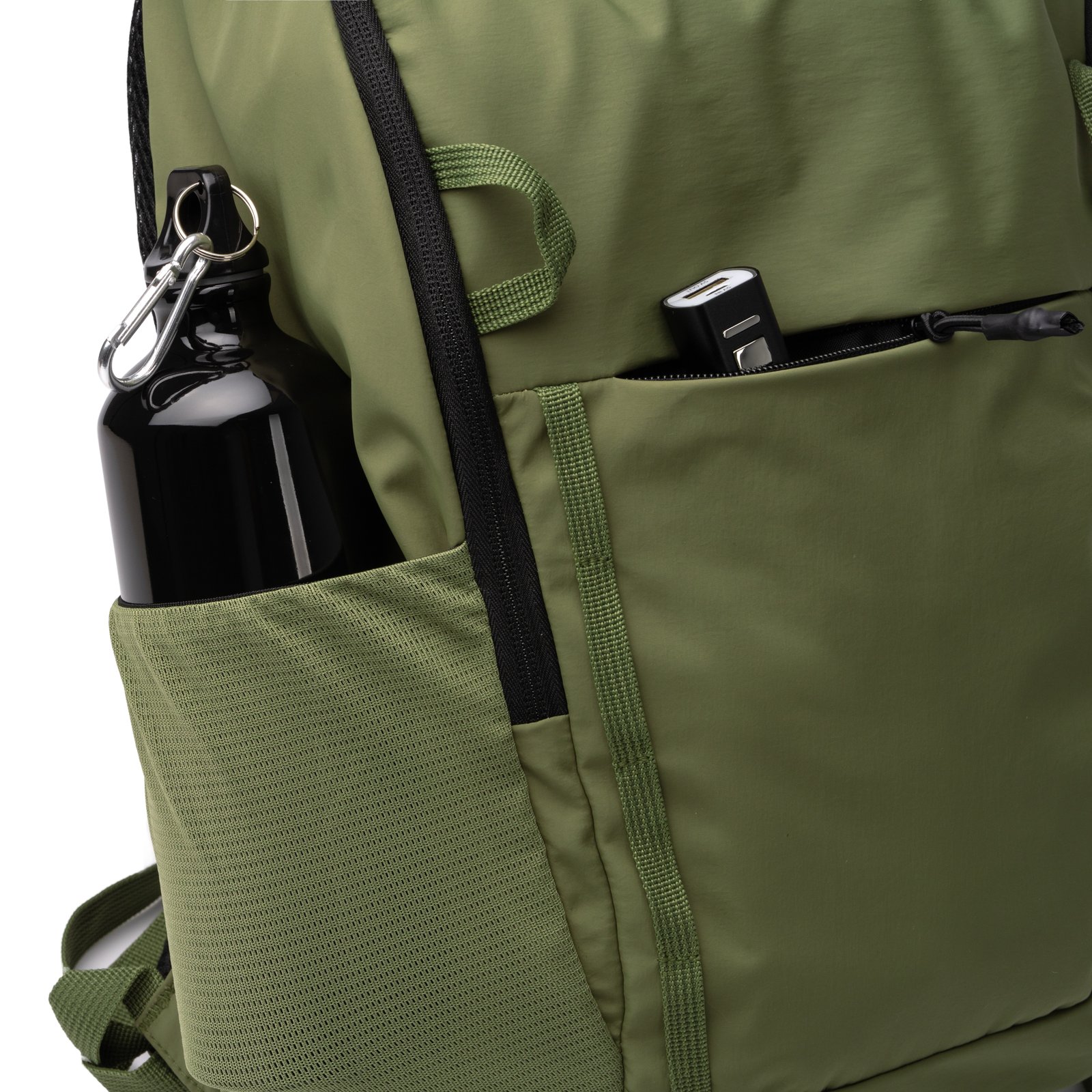 Mochila elaborada en nylon Taslon 280D. Cuenta con un compartimento principal con doble cremallera. En su interior dispone de un bolsillo acolchado para portátil de hasta 15″, además de un bolsillo de menor tamaño con cierre de cremallera. Incorpora dos bolsillos frontales externos con cremalleral y dos dos bolsillos laterales en malla con elástico especialmente diseñados para botellas, a conjunto con el cuerpo de la mochila. Sus asas y espalda van acolchadas para mayor comodidad. Además, incluye cinta lateral para trolley.