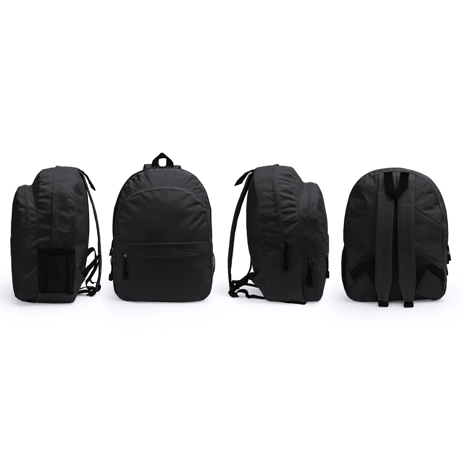 Mochila realizada en poliéster 600D con dos compartimentos principales y bolsillo frontal. Bolsillo de redecilla lateral. Tiras y espalda acolchadas.