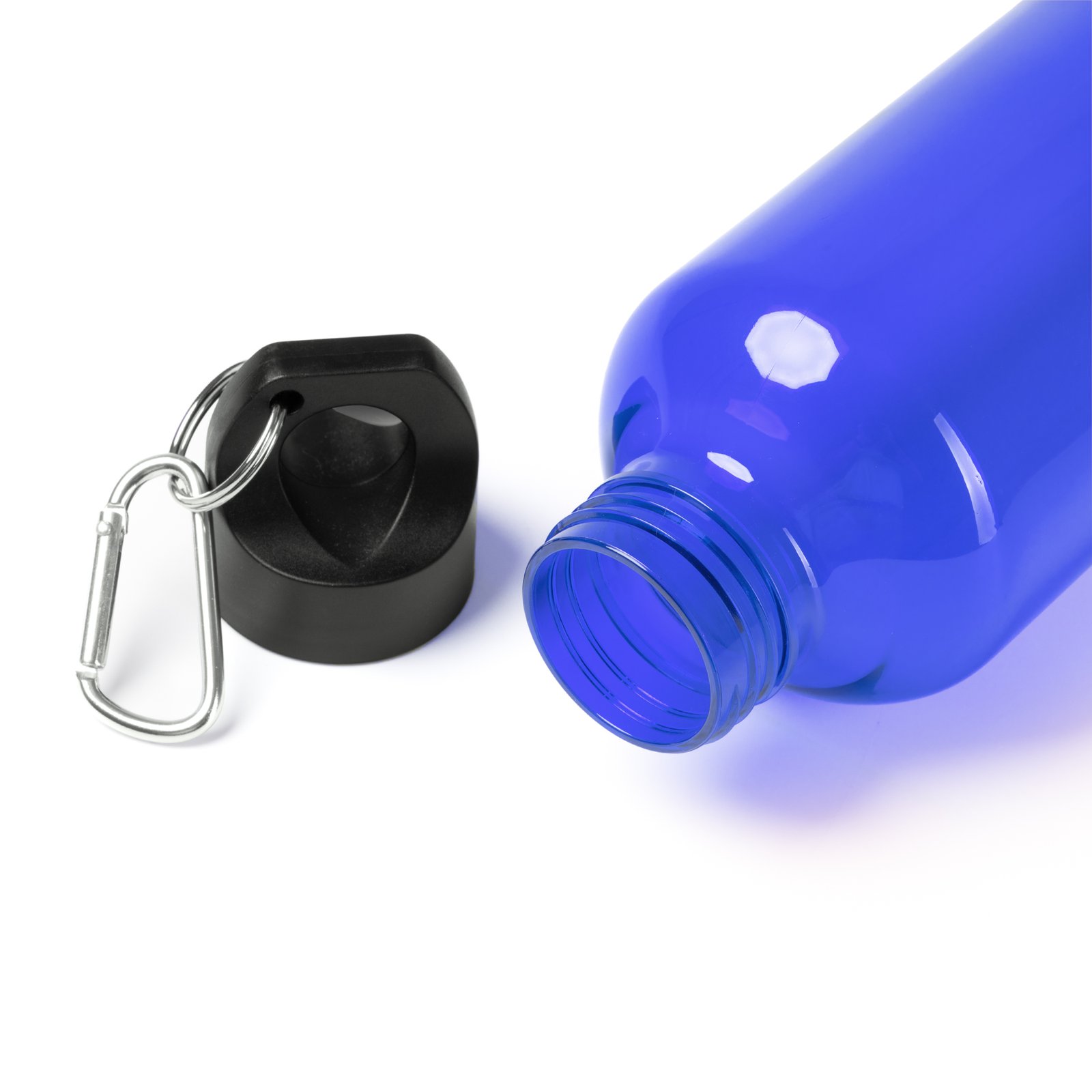 Botella con cuerpo de RPET. T Capacidad 580 ml. Con tapón a rosca con asa de transporte y mosquetón incorporado, facilitando su transporte. Una opción sostenible y respetuosa con el medioambiente a la vez que práctica.