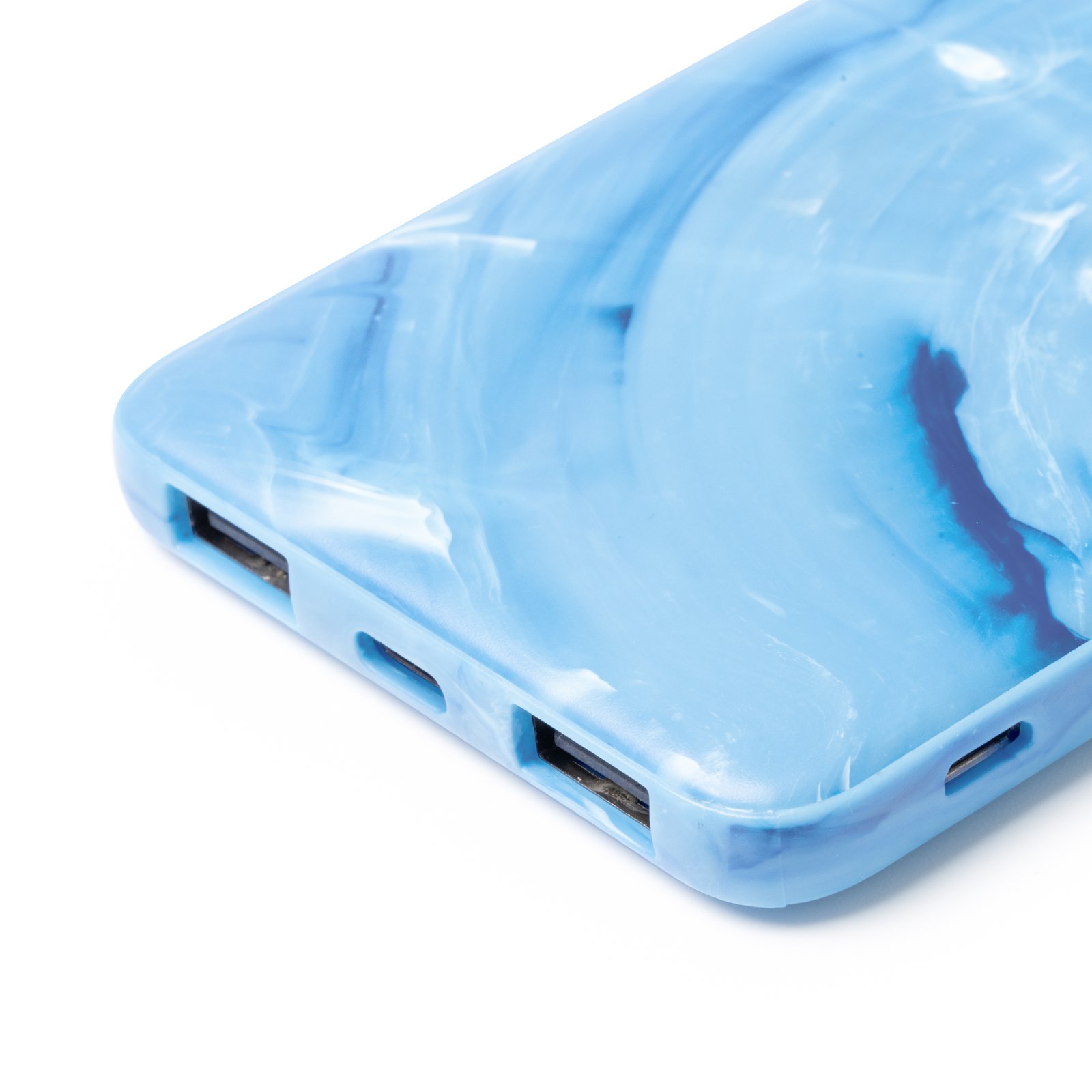 Batería externa recargable de 5000 mAh realizada a partir de tapones de botella reciclados. Con entrada micro USB y salida USB y Tipo C, e indicador led de carga. Cable Tipo C incluido.