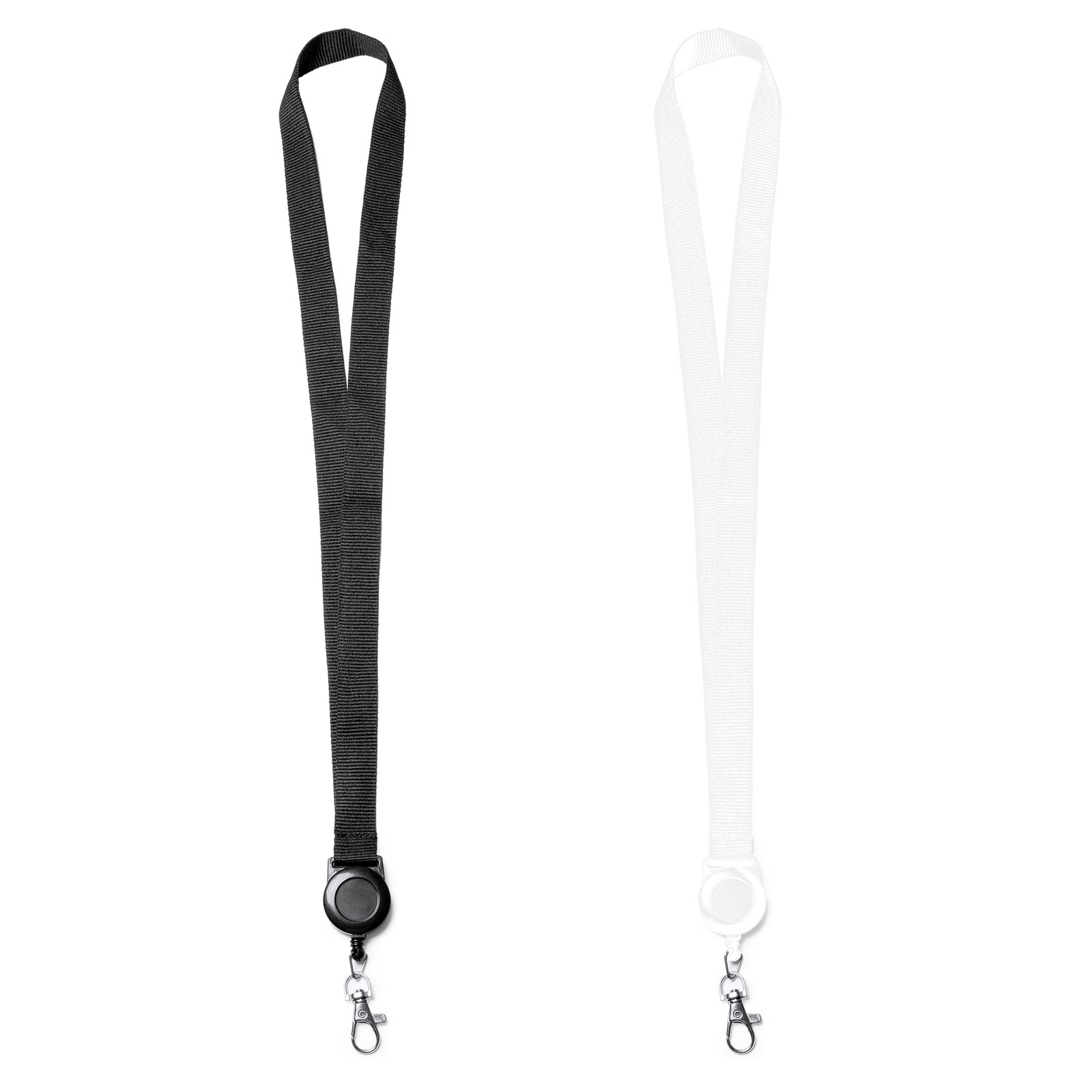 Lanyard con accesorio retráctil extensible. Incluye mosquetón.