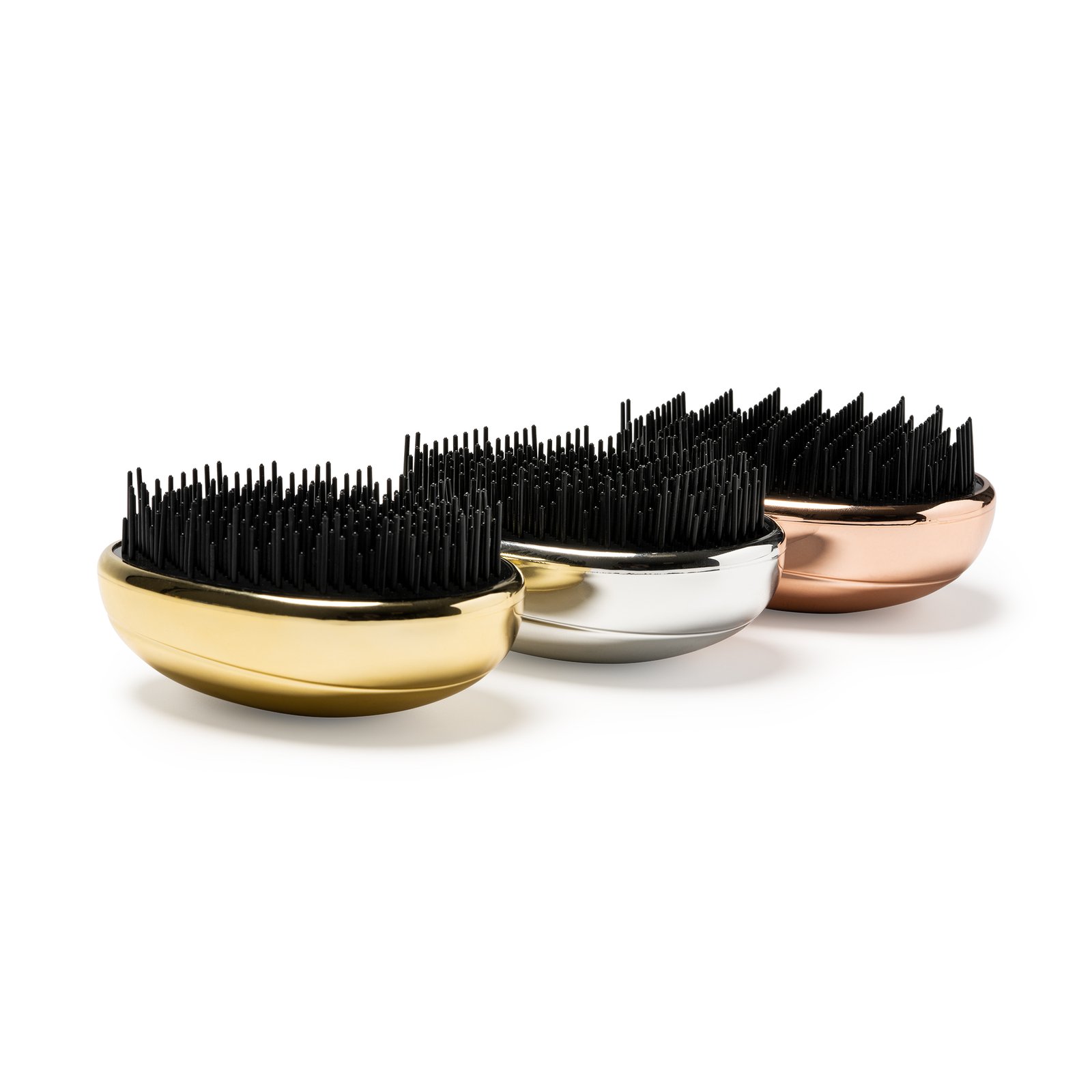 Práctico cepillo anti enredo con acabado brillante.