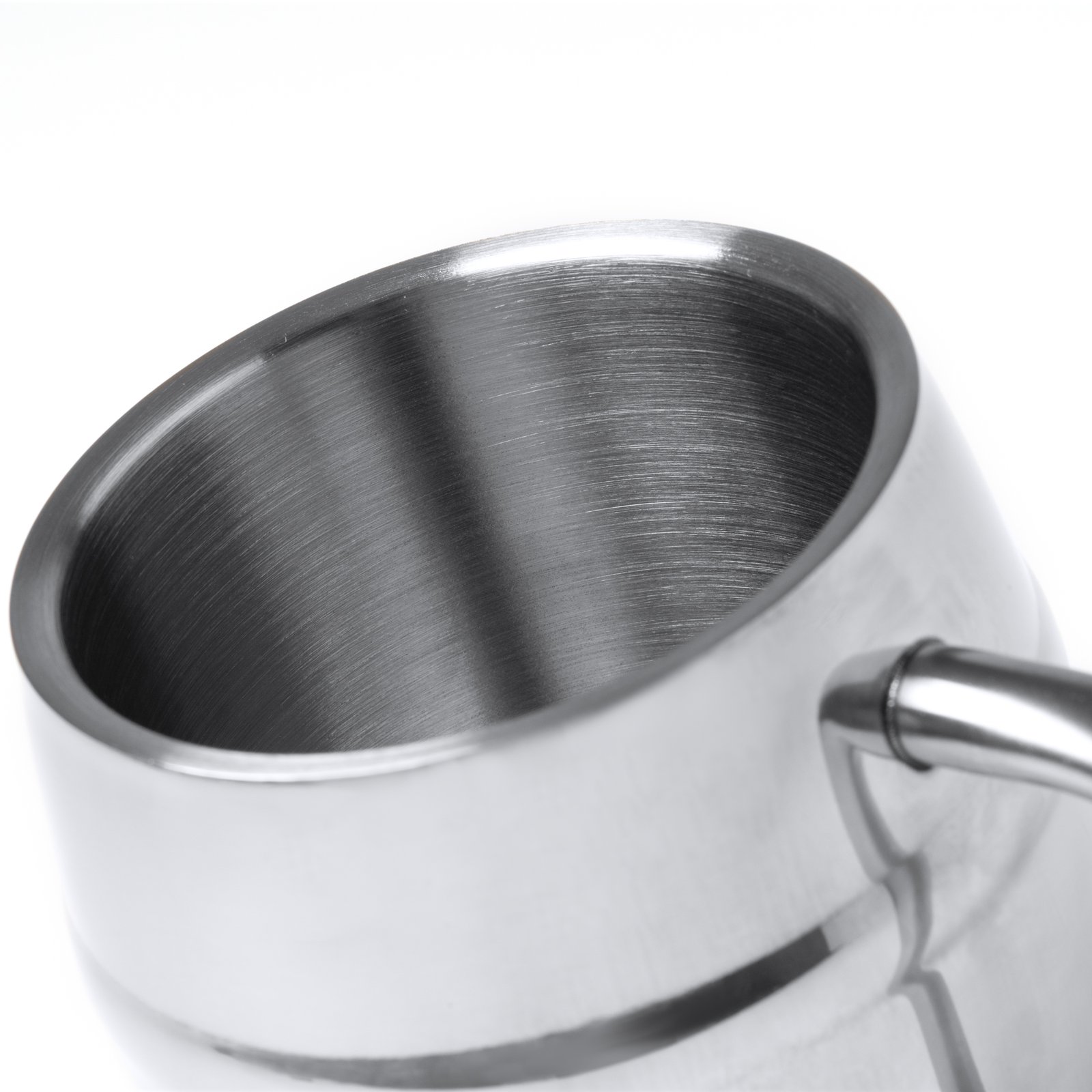 Jarra de acero inoxidable 304 de doble pared con acabado cepillado. Capacidad de 420 ml.
