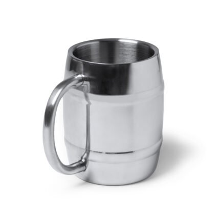Taza alta metálica esmaltada con borde redondeado en color plata. Capacidad 380ml. Cuenta con recubrimiento especial para sublimación. Gracias a