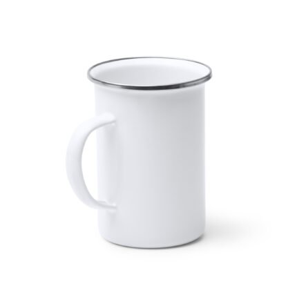 Fantástica taza metálica esmaltada con borde plateado, con capacidad de 370 ml y recubrimiento especial para sublimación, de estilo retro.