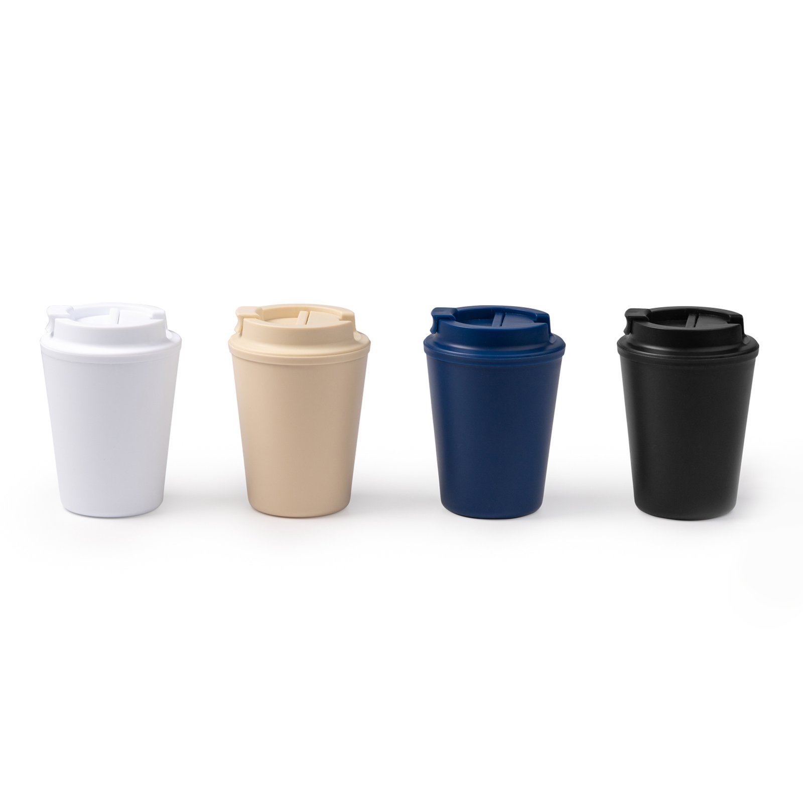Vaso con cuerpo y tapa de PP, cuenta con una tapa a rosca y boquilla para facilitar el consumo. Con una capacidad de 300 ml, es perfecto para bebidas calientes o frías. Su diseño compacto y funcional lo hace ideal para llevar a cualquier lugar, ofreciendo comodidad y practicidad.