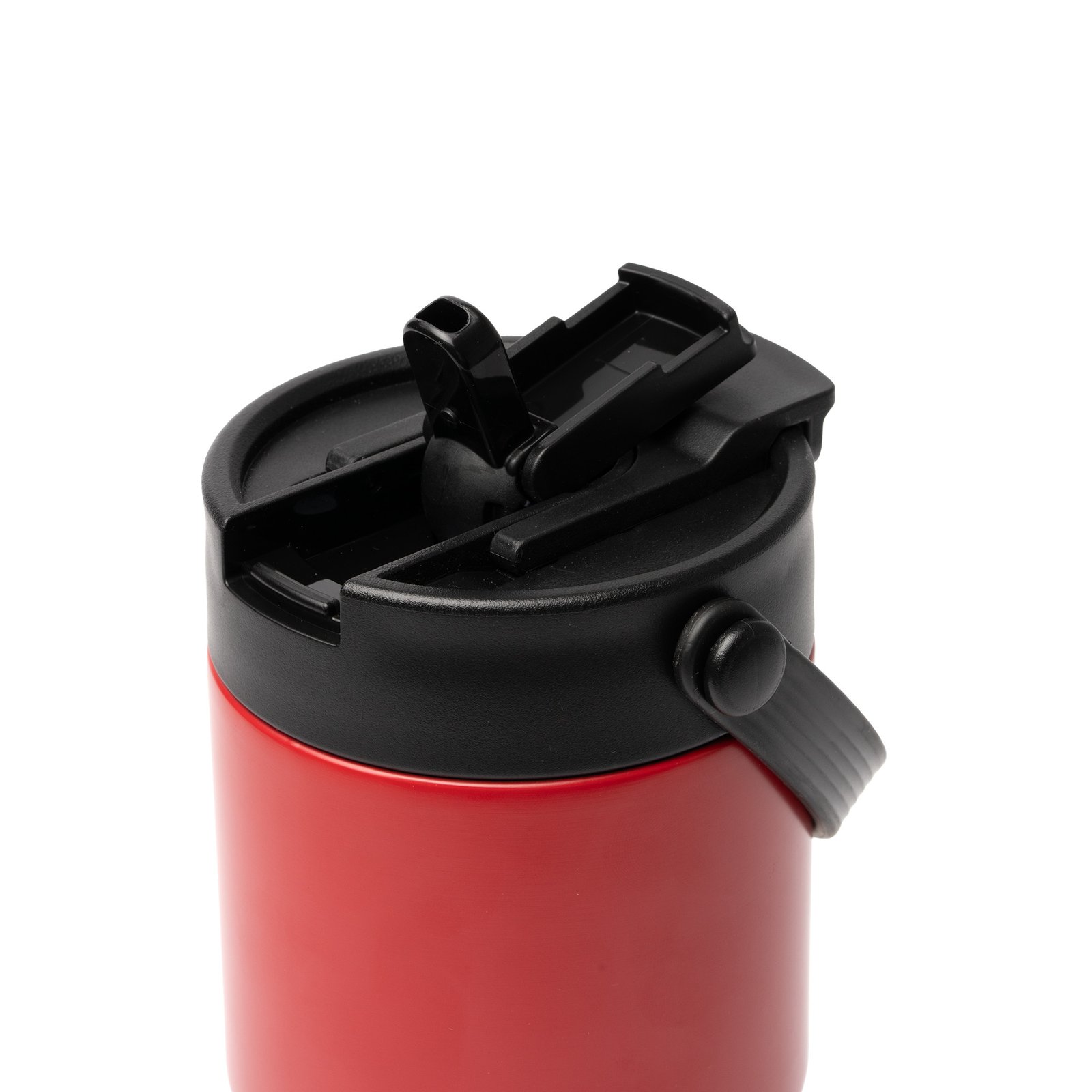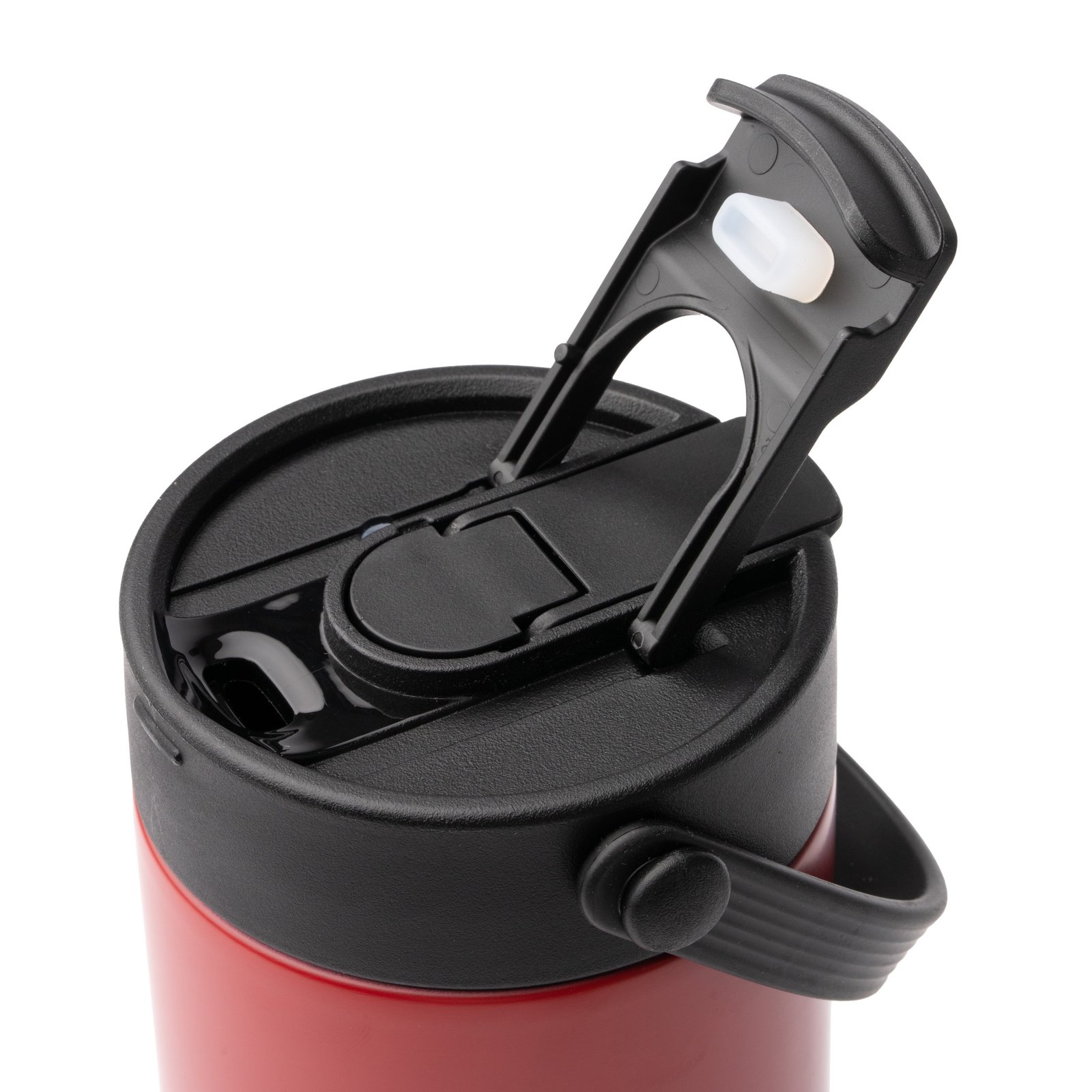 Vaso térmico elaborado en acero inoxidable 304 reciclado de doble capa. Con capacidad de 600 ml. Cuenta con doble tapa con pajita con cierre independiente por un lado y dosificador para beber en su extremo opuesto. Con diseño biselado en su parte inferior y liso en la superior, lo que lo convierte en un diseño elegante y ergonómico a la vez. Además, incluye asa de transporte abatible y base antideslizante para hacer más cómodo su uso.
