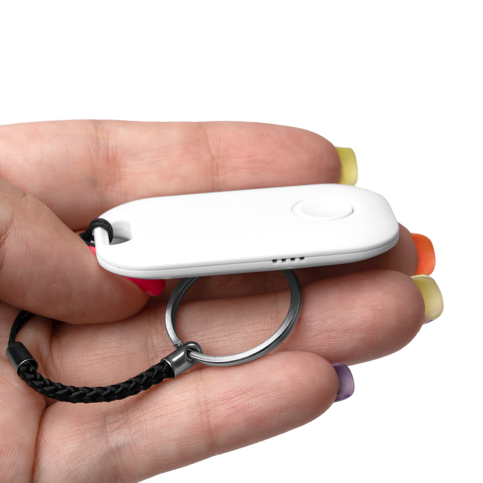 Dispositivo localizador anti pérdida resistente al agua elaborado en ABS con llavero incluido. Compatible con dipositivos iOS y Android mediante