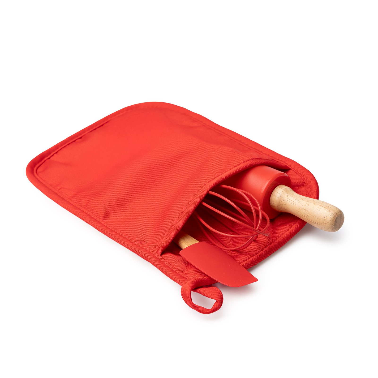Set de cocina compuesto por 3 piezas para elaborar galletas en casa. Incluye rodillo, varilla y espátula con diseño navideño. Incluye funda multiusos donde se introducen los elementos del set para su guardado.