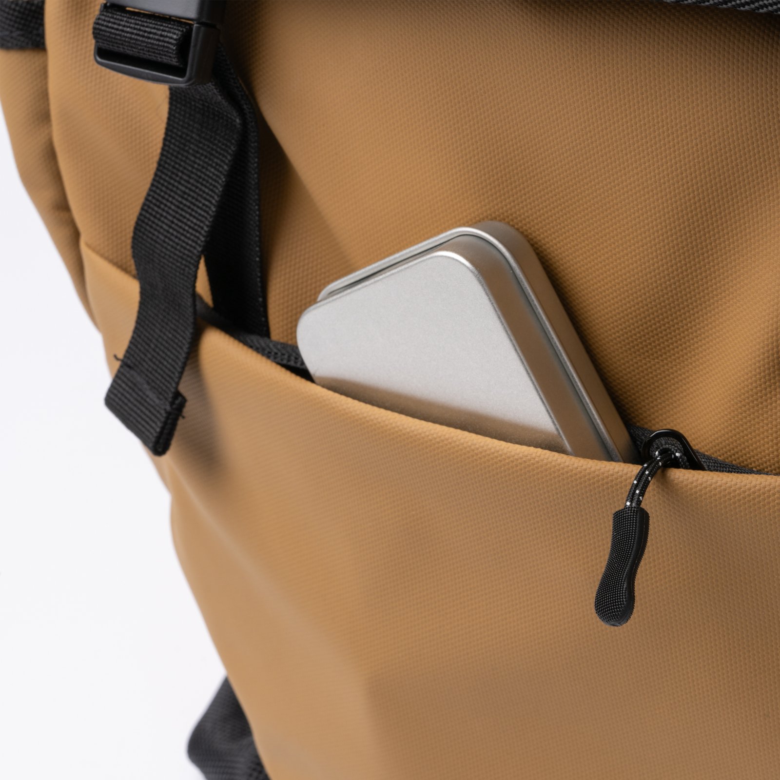 Mochila ejecutiva realizada en nylon reciclado. Gran compartimento prinicpal y bolsillo acolchado para portátil 15″. Bolsillo exterior y 2 bolsillos