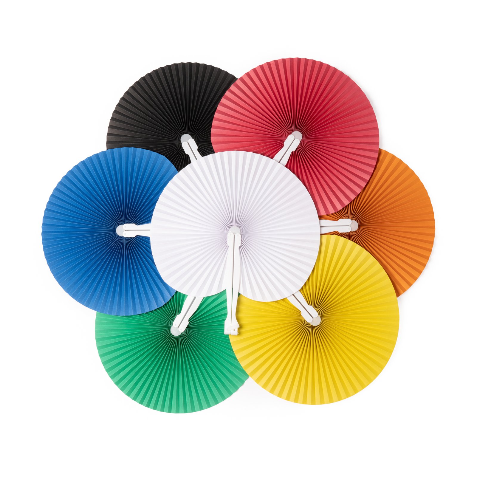 Abanico con varillas de bambú y tela de poliéster. Disponible en una amplia variedad de colores. Composición: Poliéster y bambúObservaciones: