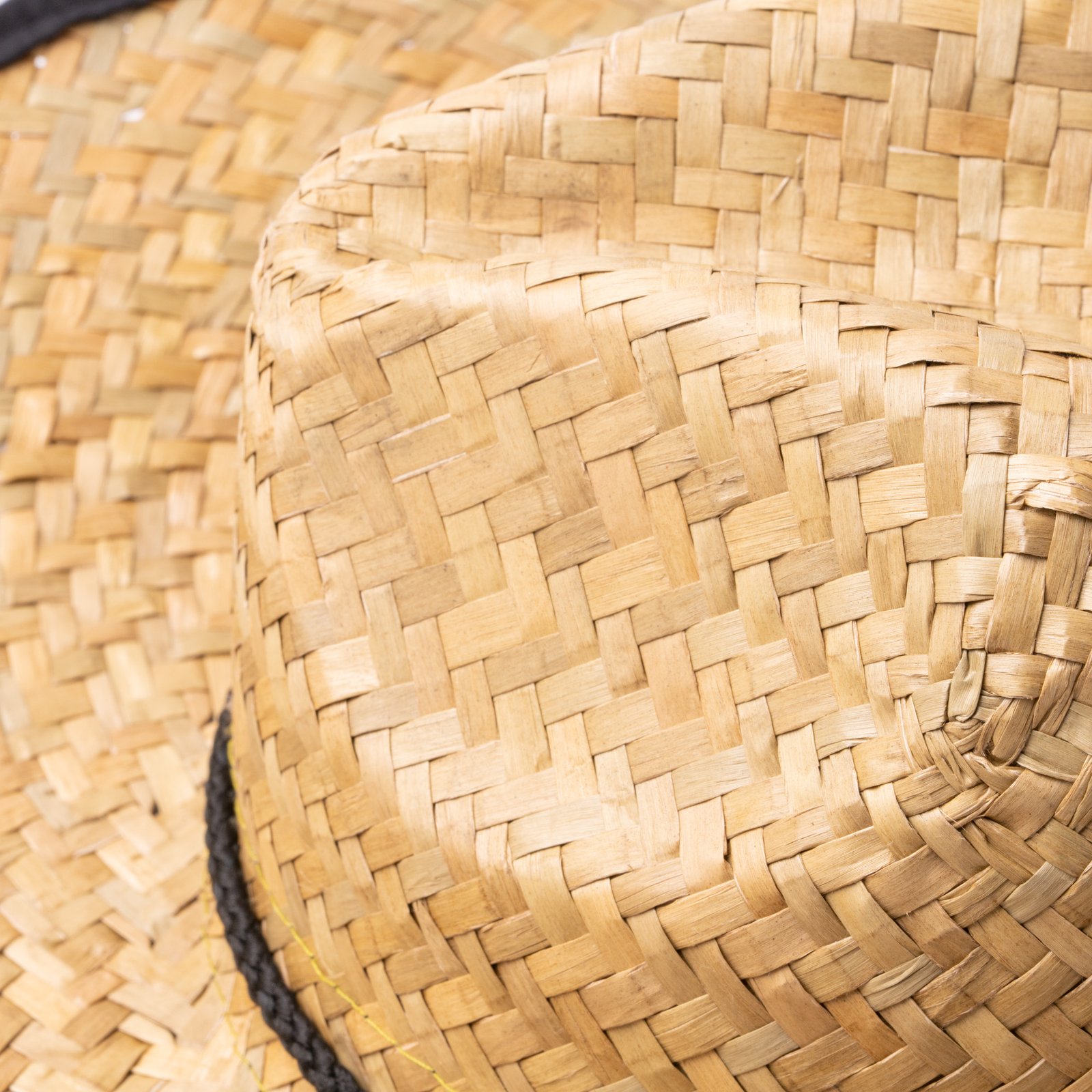 Sombrero elaborado en paja natural con ribete con refuerzo de poliéster rodeando el borde y cordón de ajuste desde la parte superior a conjunto del ribete.