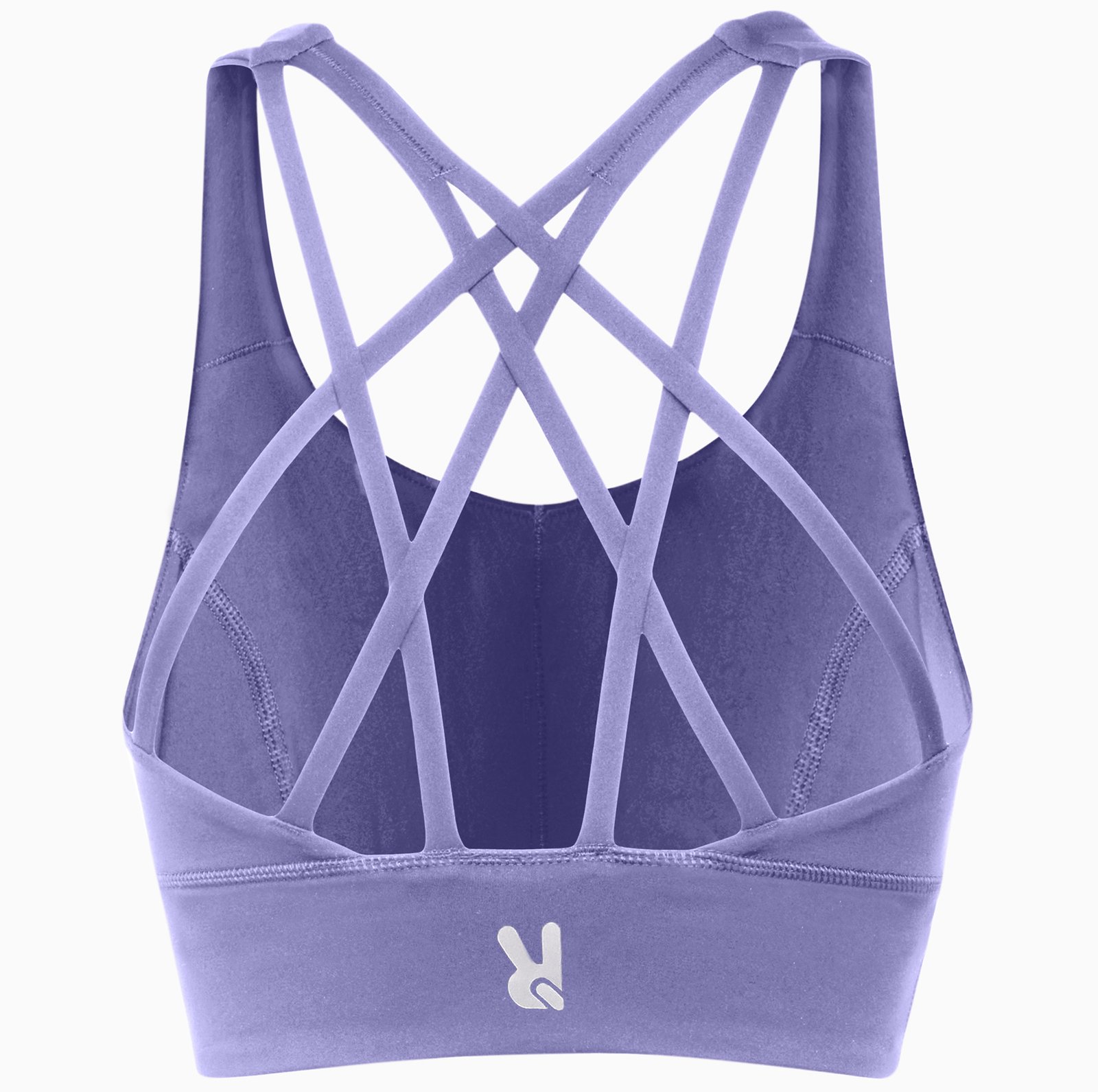 Top deportivo para mujer de alta sujeción. Tirantes entrelazados en espalda. Banda elástica de refuerzo en pieza bajo pecho. Doble tejido y forro. Copas de foam extraíbles. Logo Roly reflectante en la espalda.