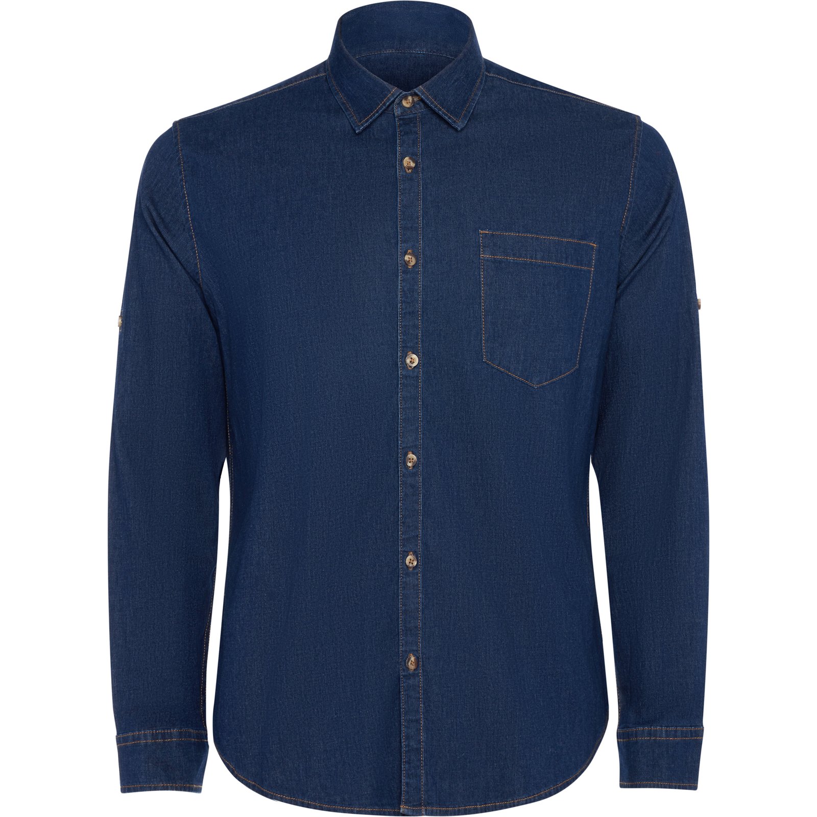 Camisa vaquera manga larga con trabilla ajustable mujer. · Tejido stretch. · Cintura ligeramente ajustada. · Cuello camisero. · Costura