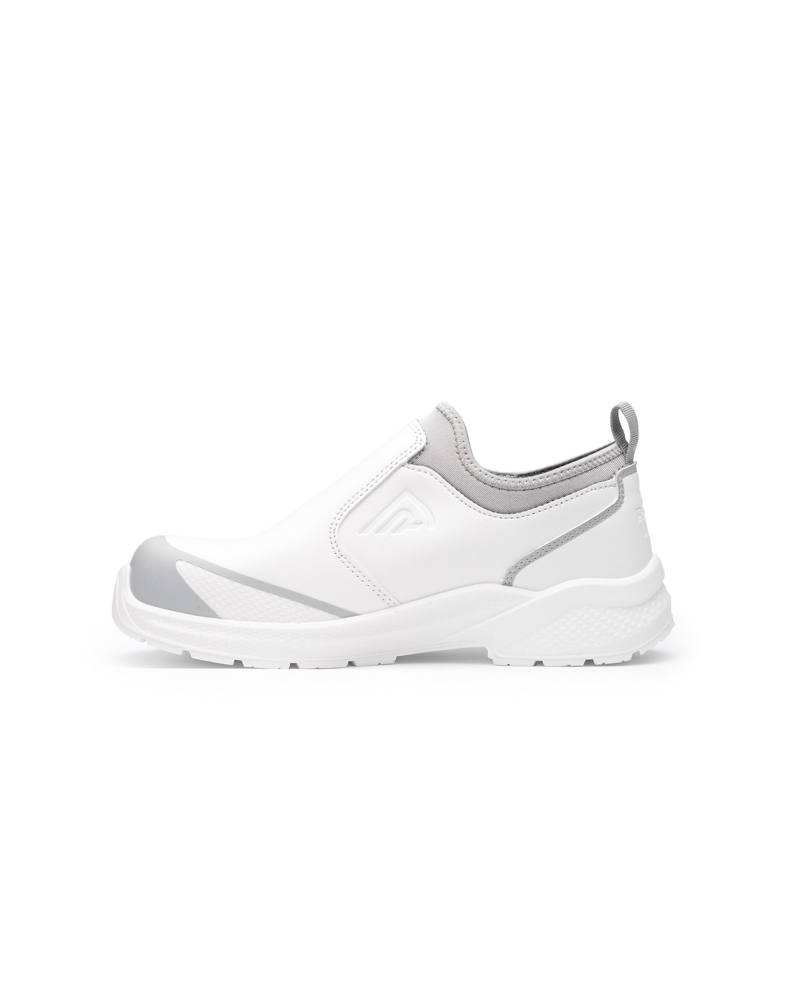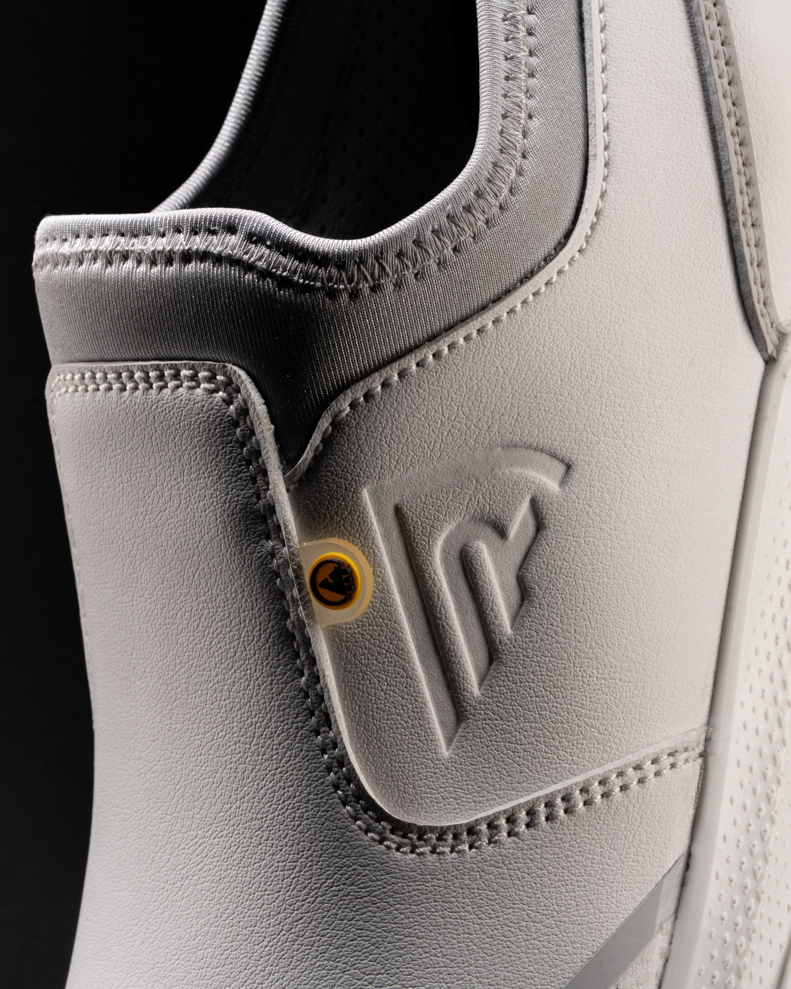 Calzado laboral de tejido de malla tridimensional con cierre en licra que se ajusta al tobillo, impidiendo la entrada de materiales.