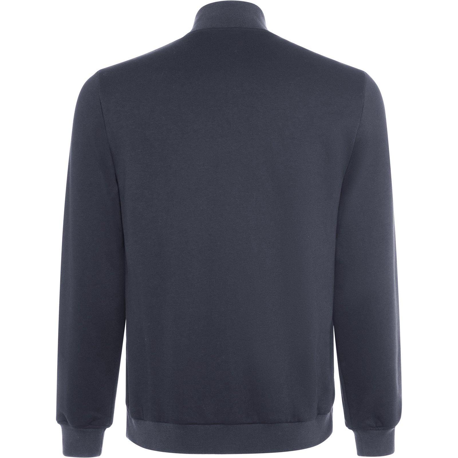 · Puños y cuello en rib 1×1 al tono de la prenda.