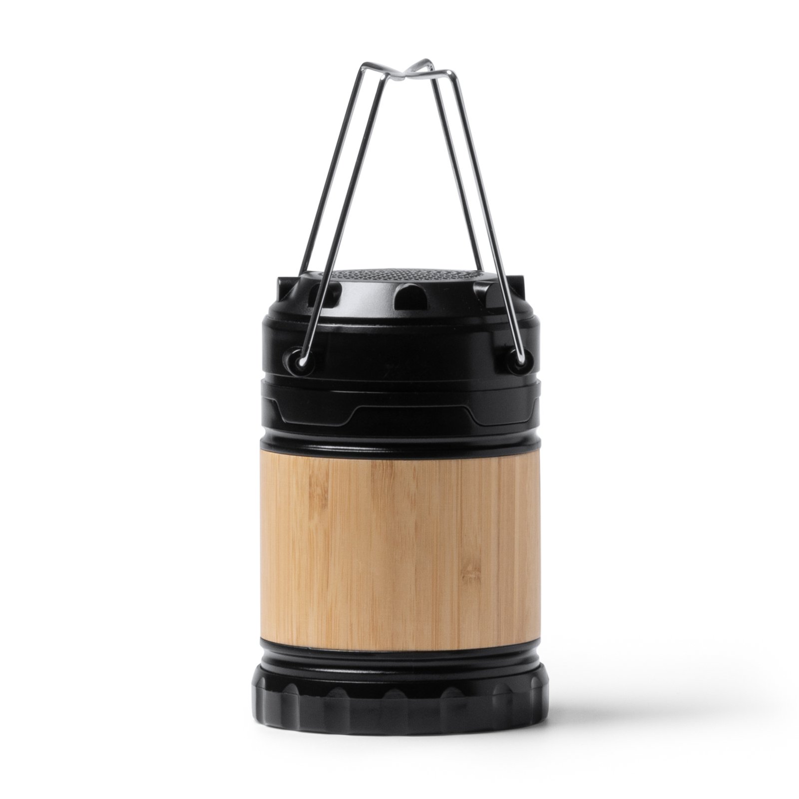 Altavoz inalámbrico con función lámpara, con cuerpo elaborado en bambú. El altavoz es recargable con una potencia de 3W con conexión Bluetooth para disfrutar de la música que desees. La lámpara cuenta con 230 lumen, de uso a pilas, con encendido automático al extenderla. Cuenta con asas de transporte para llevarla donde quieras más fácilmente.