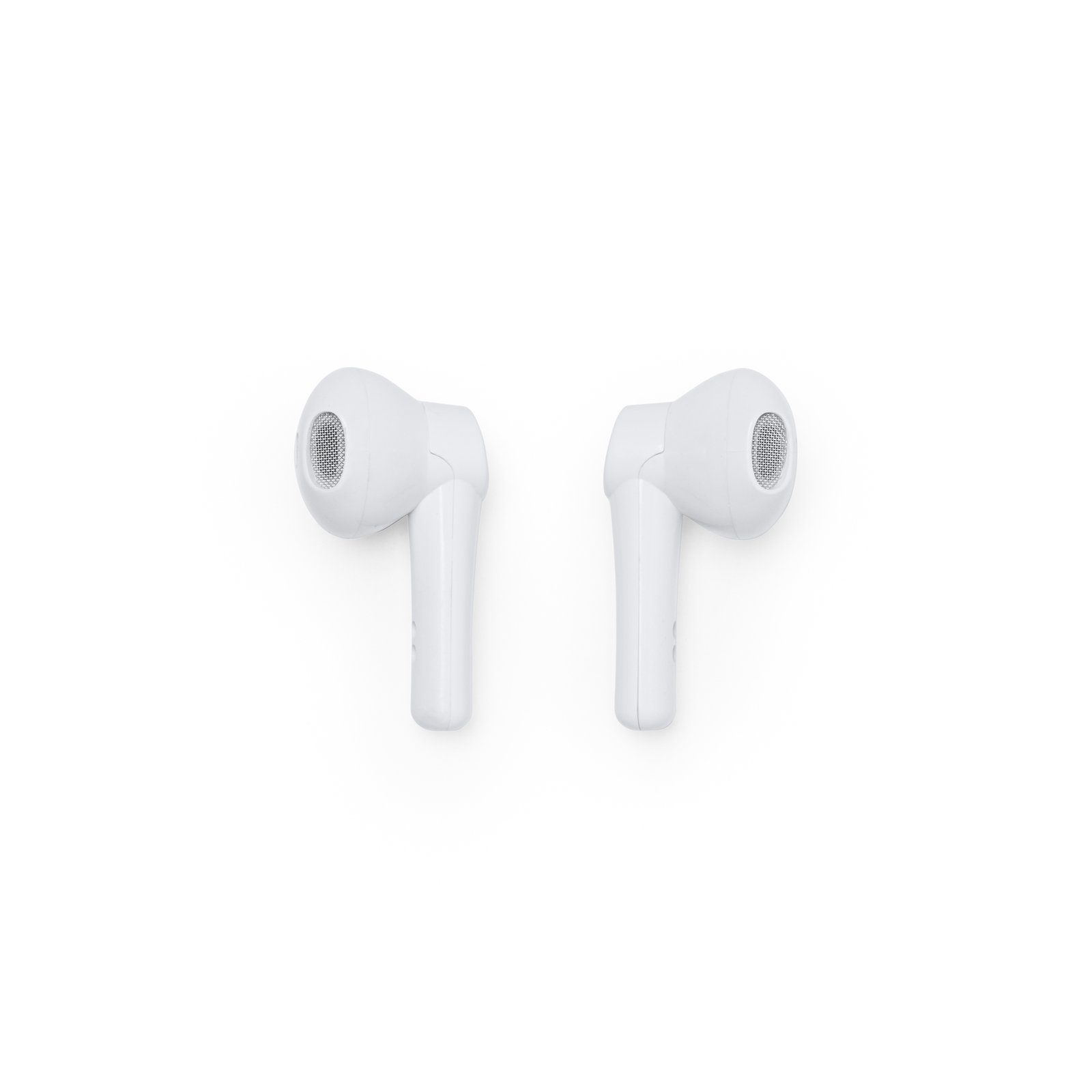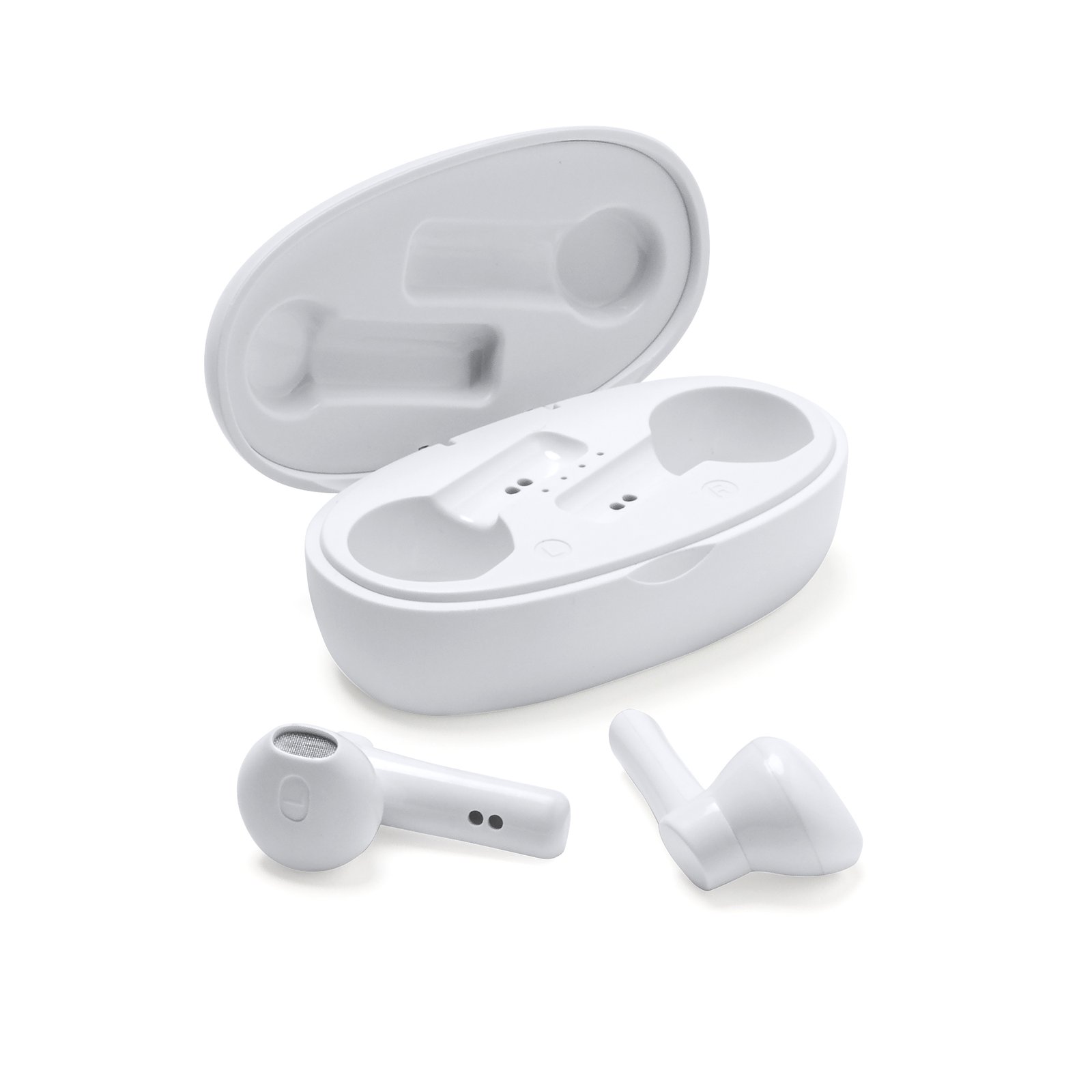 Auriculares inalámbricos presentado en estuche elaborado en material reciclado y detalles en bambú en la superficie. Con control de reproducción de audio, con funciones de control de volumen, pista siguiente. También cuenta con función de manos libres y asistente de voz mediante botón multifunción táctil de ambos auriculares. Incluye indicador luminoso en ambos auriculares e indicador luminoso en el estuche de carga.