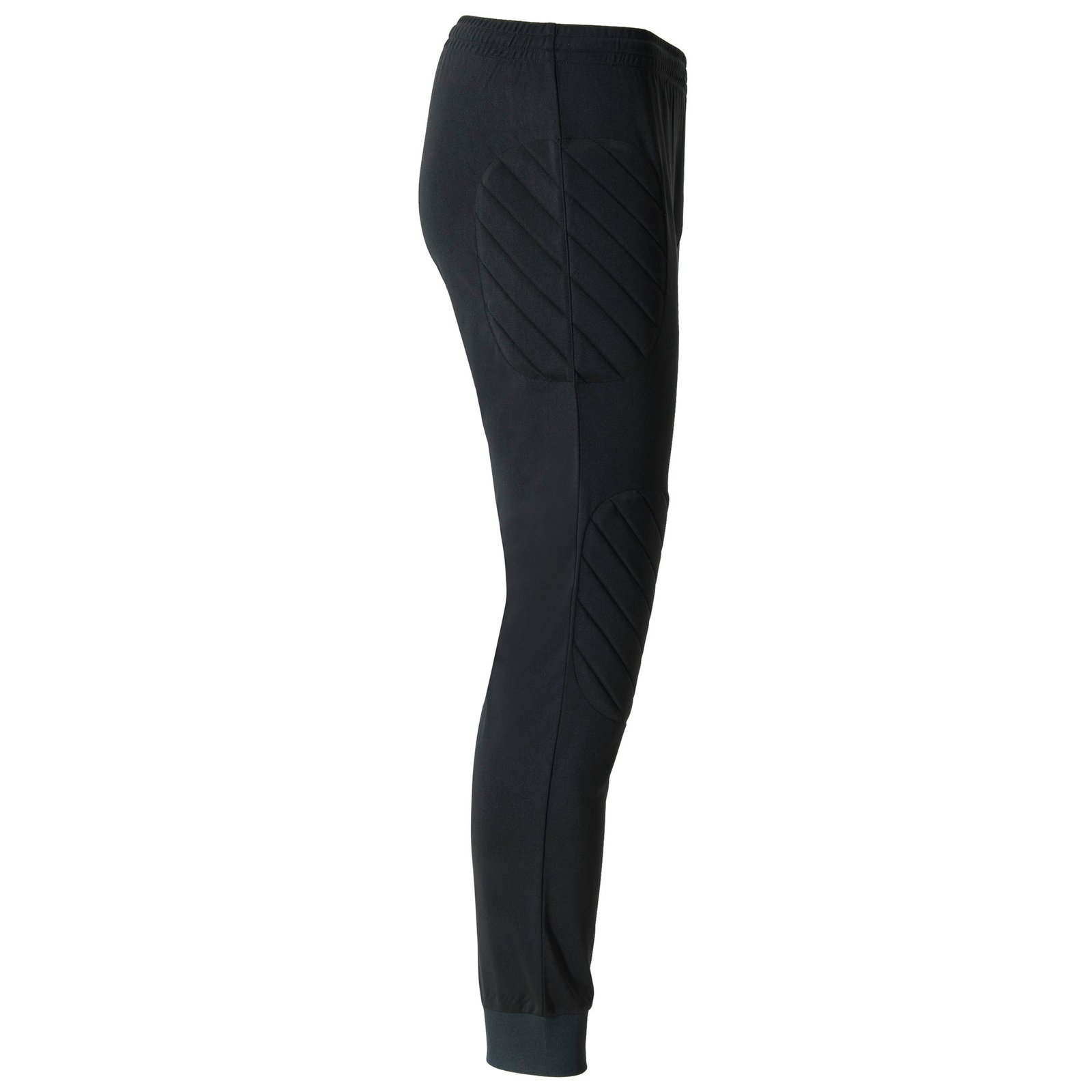 Pantalón largo de portero transpirable. Paneles laterales acolchados. Cintura engomada y cordón de ajuste. Rib 1×1 en tobillos.