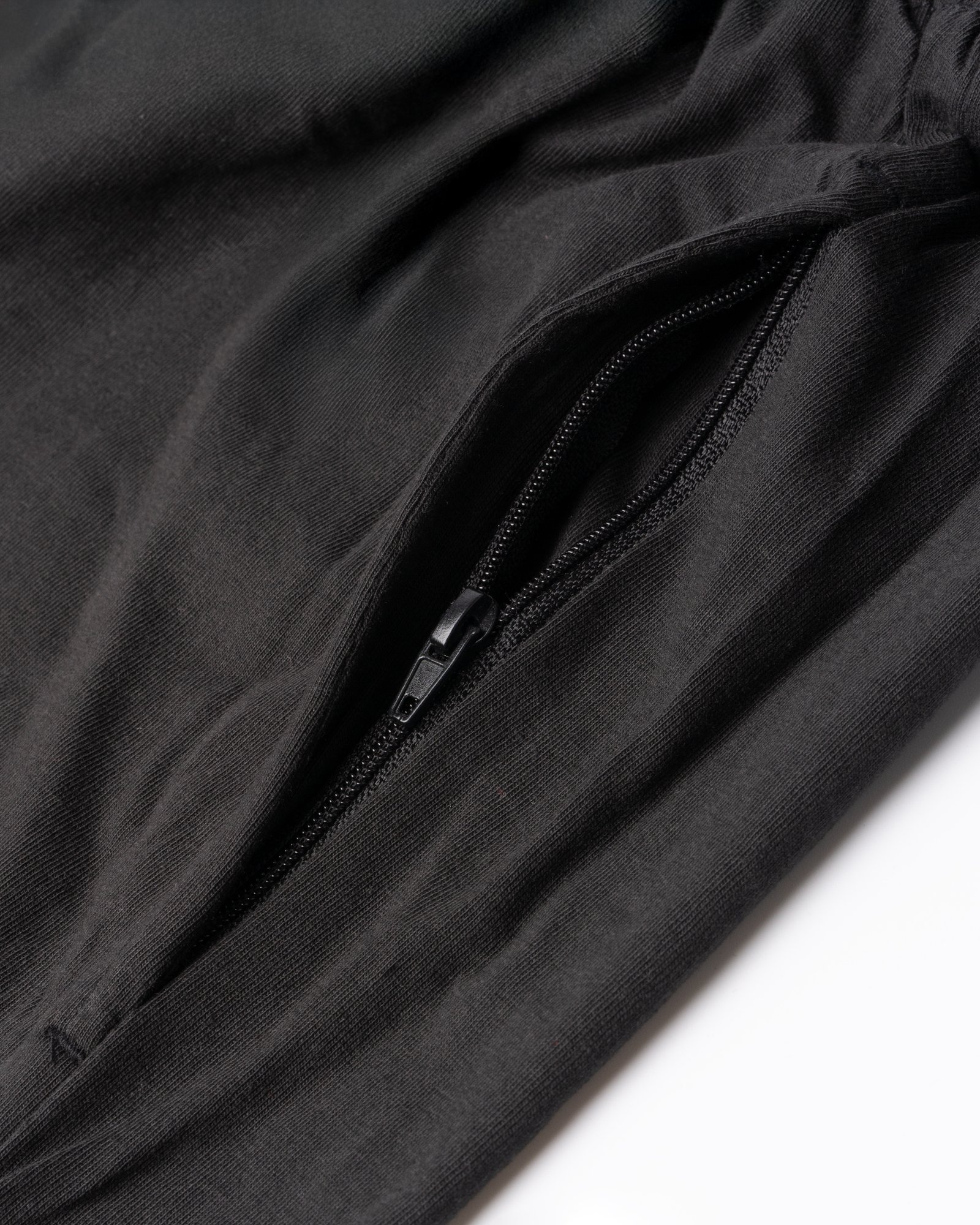 Pantalón largo recto punto liso básico. Bolsillos laterales con cremallera en tallas de adulto. Cinturilla engomada con cordón ajustable interior.