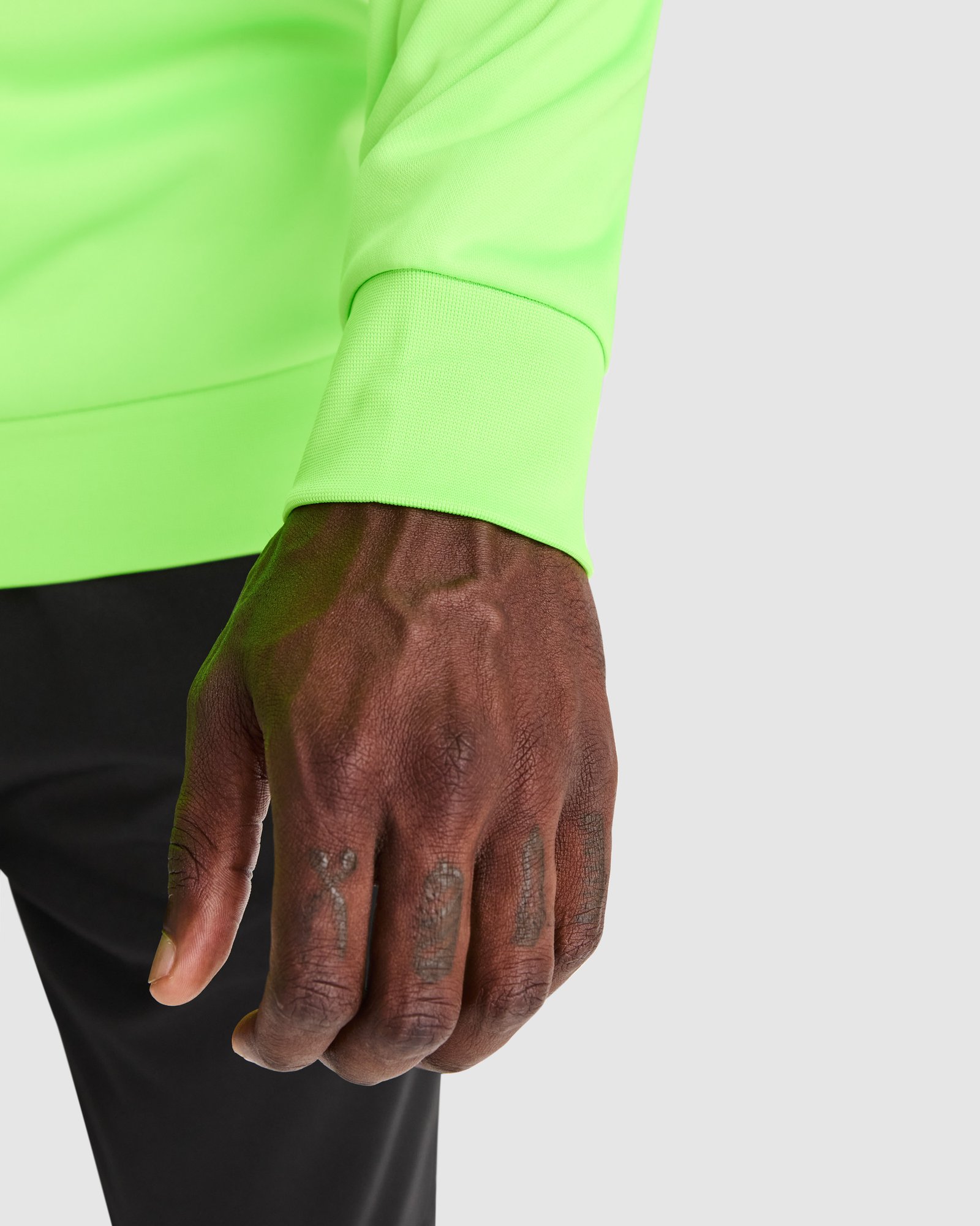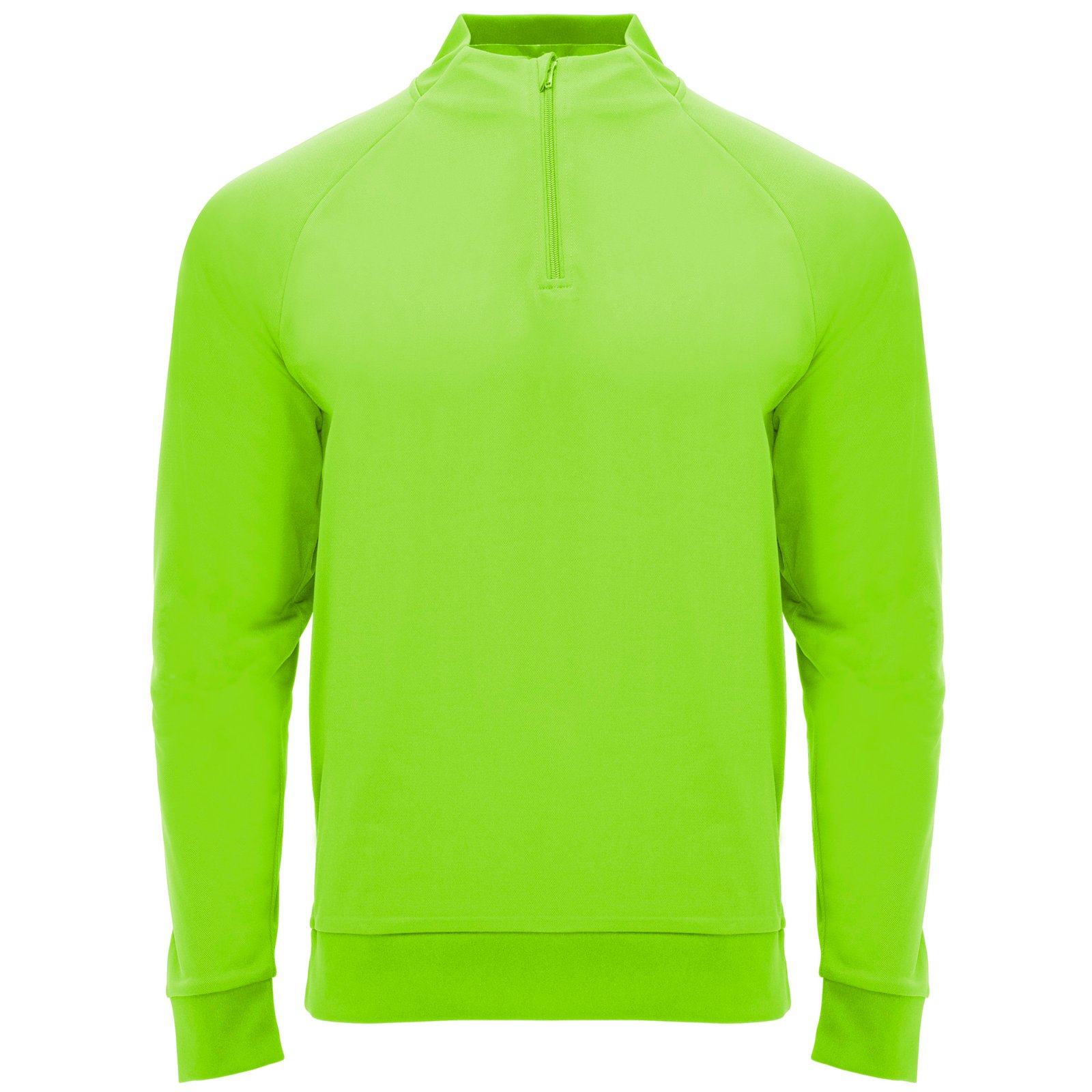 Chaqueta deportiva manga ranglan media cremallera. Tejido perchado. Pieza trasera en el cuello y puños de canalé 1×1. Combinable con pantalón NEAPOLIS 0521.
