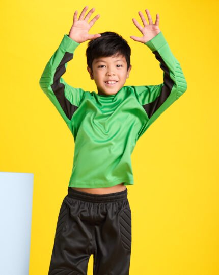 Pantalón largo de portero transpirable. Paneles laterales acolchados. Cintura engomada y cordón de ajuste. Rib 1×1 en tobillos.Composición: 100% poliéster,