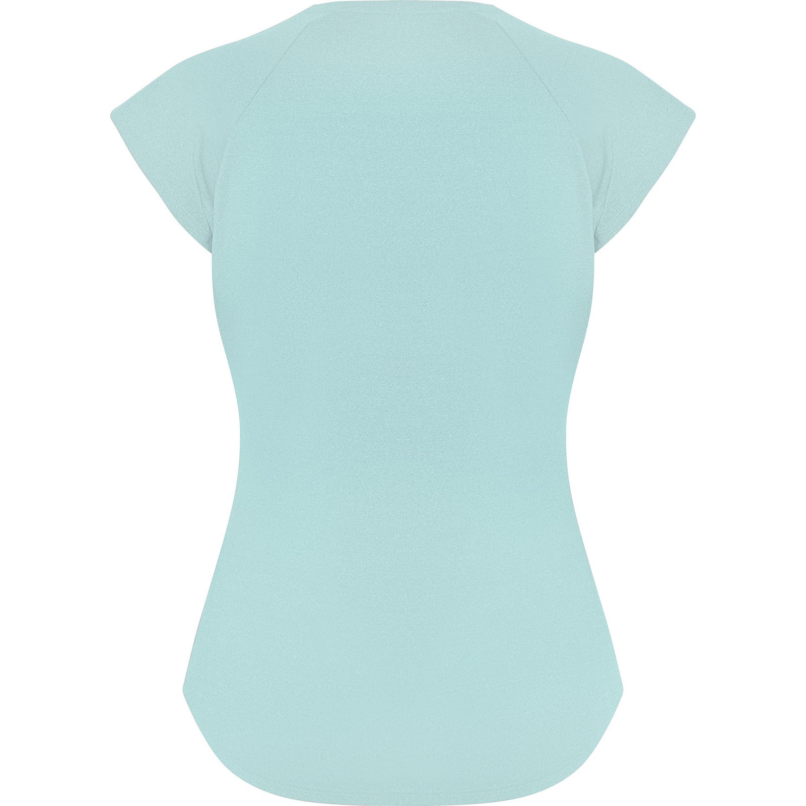 Camiseta técnica multideporte para mujer con manga ranglán. Cuello pico. Tejido poliéster con tacto algodón. Corte entallado. Bajo con forma curva. Costuras overlock a tono en bajo y mangas. Logo Roly reflectante en bajo lateral izquierdo.