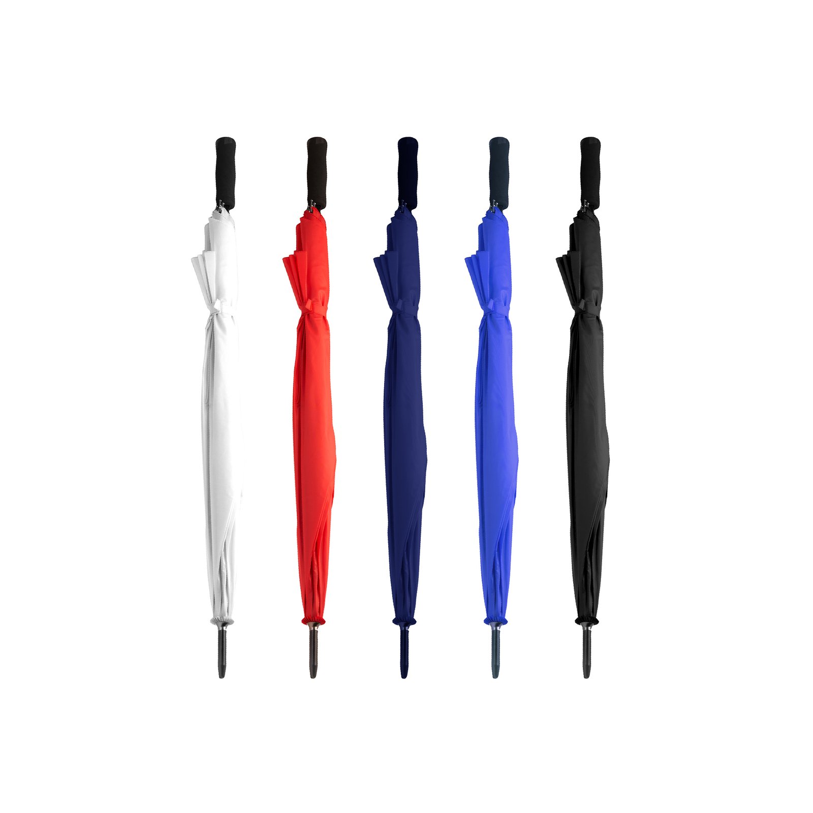 Paraguas plegable antiventiscas de apertura automática. Tejido pongee 190T con funda a juego. Mango de EVA y varillas metálicas en