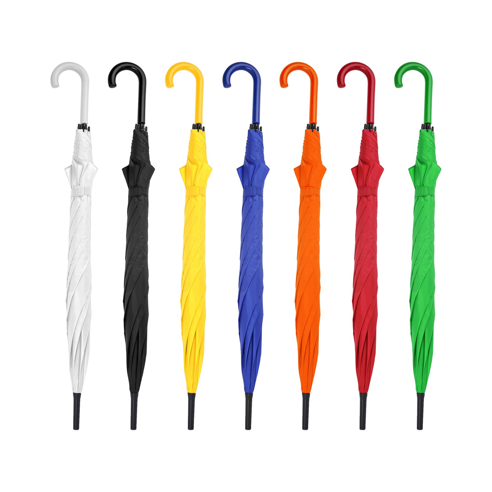 Paraguas con tela y mango del mismo color. Con varillas y terminaciones en negro. Cierre con velcro y apertura automática. Diámetro 105.