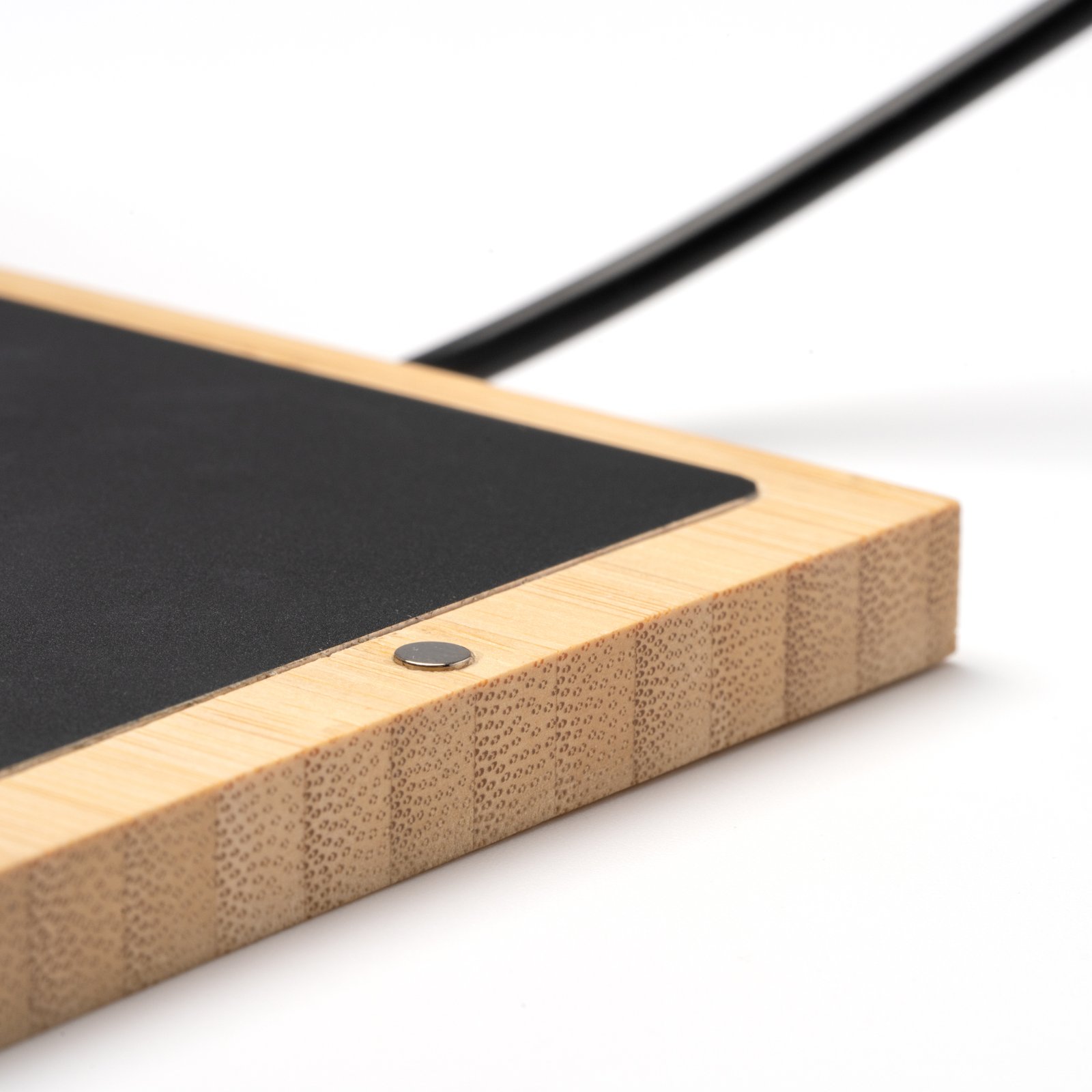 Lapicero con calentador de tazas, realizado en cuerpo de bambú. El calentador de tazas se encuentra imantado al lapicero. Cable de conexión Tipo C con adaptador USB, integrado.