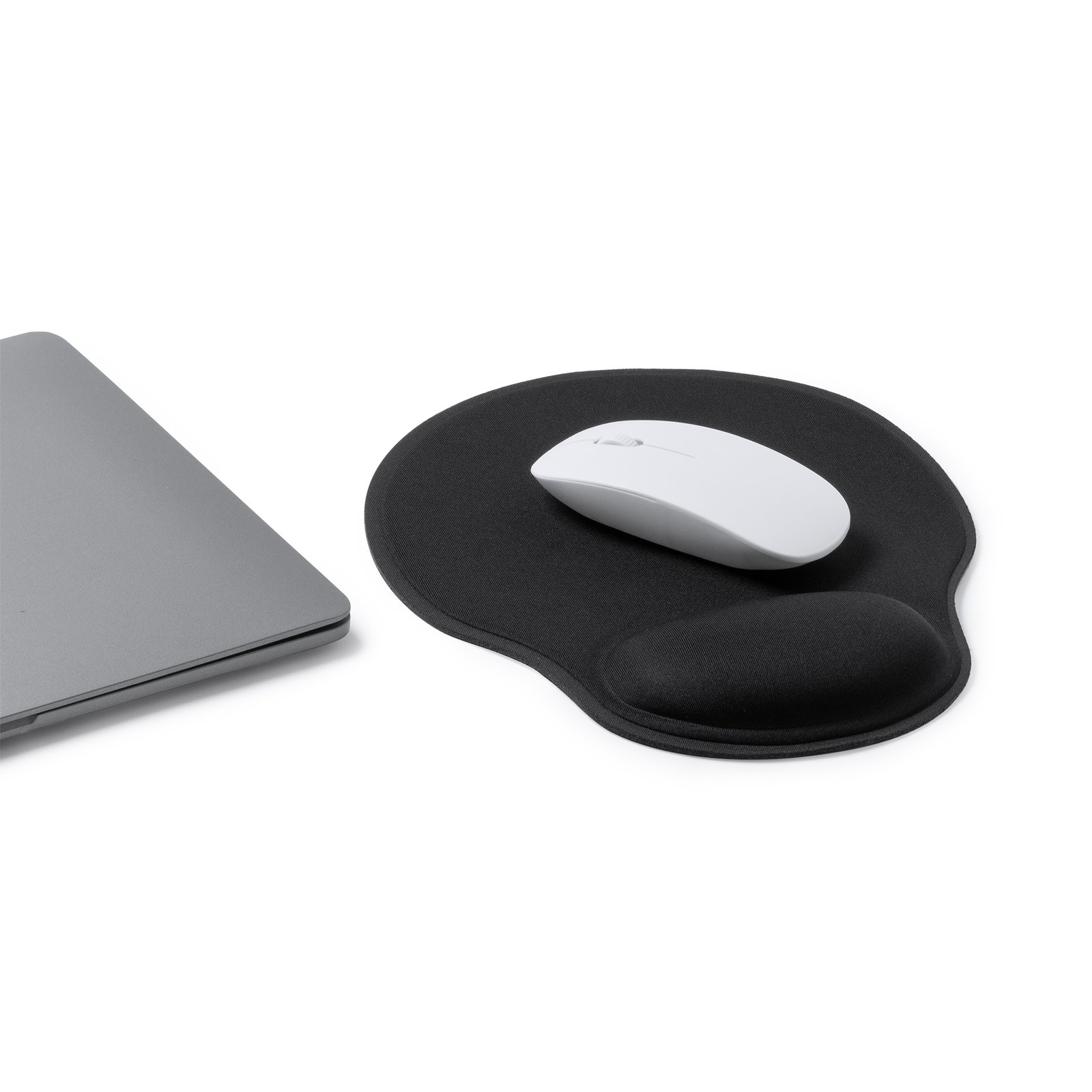 Alfombrilla para ratón realizada en poliéster suave con reposamuñecas acolchado. Base antideslizante de goma.