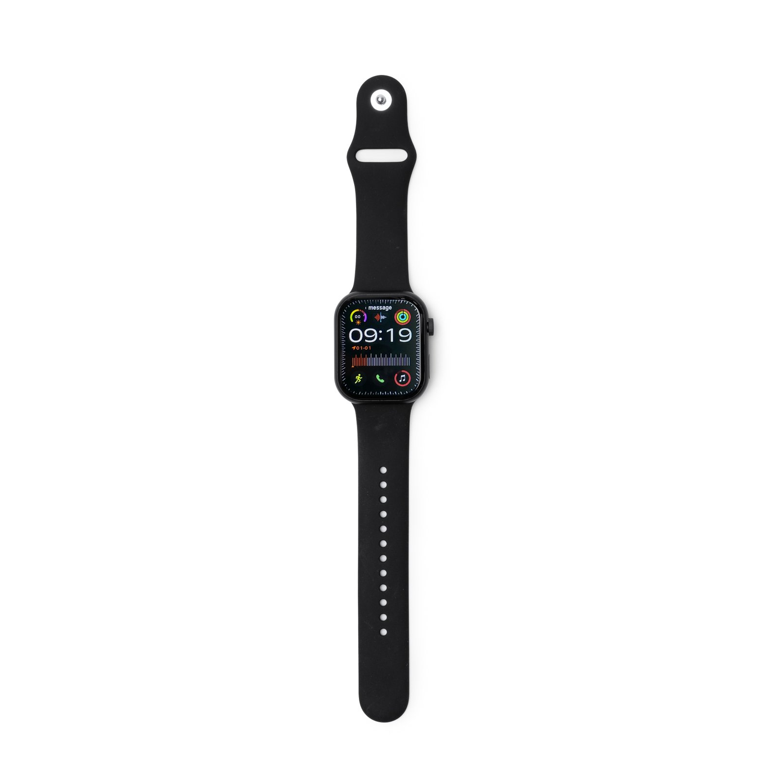 Reloj inteligente con funciones de actividad. Correa de TPU ajustable y pantalla de 2,01 pulgadas. Cuenta con función llamadas a través de conexión Bluetooth, con controles para responder, colgar, marcar o acceder al historial de llamadas mediante sus botones multifunción. También incorpora funciones de medición de ritmo cardíaco, presión arterial, monitorización de deporte, con gran variedad de modos, número de pasos diarios, pulsómetro, control de calorías quemadas, alarma, visualización de mensajes, fotografía remota, reproducción de música, asistente de voz y notificaciones, entre otras. Conexión mediante APP compatible con IOS y Android.