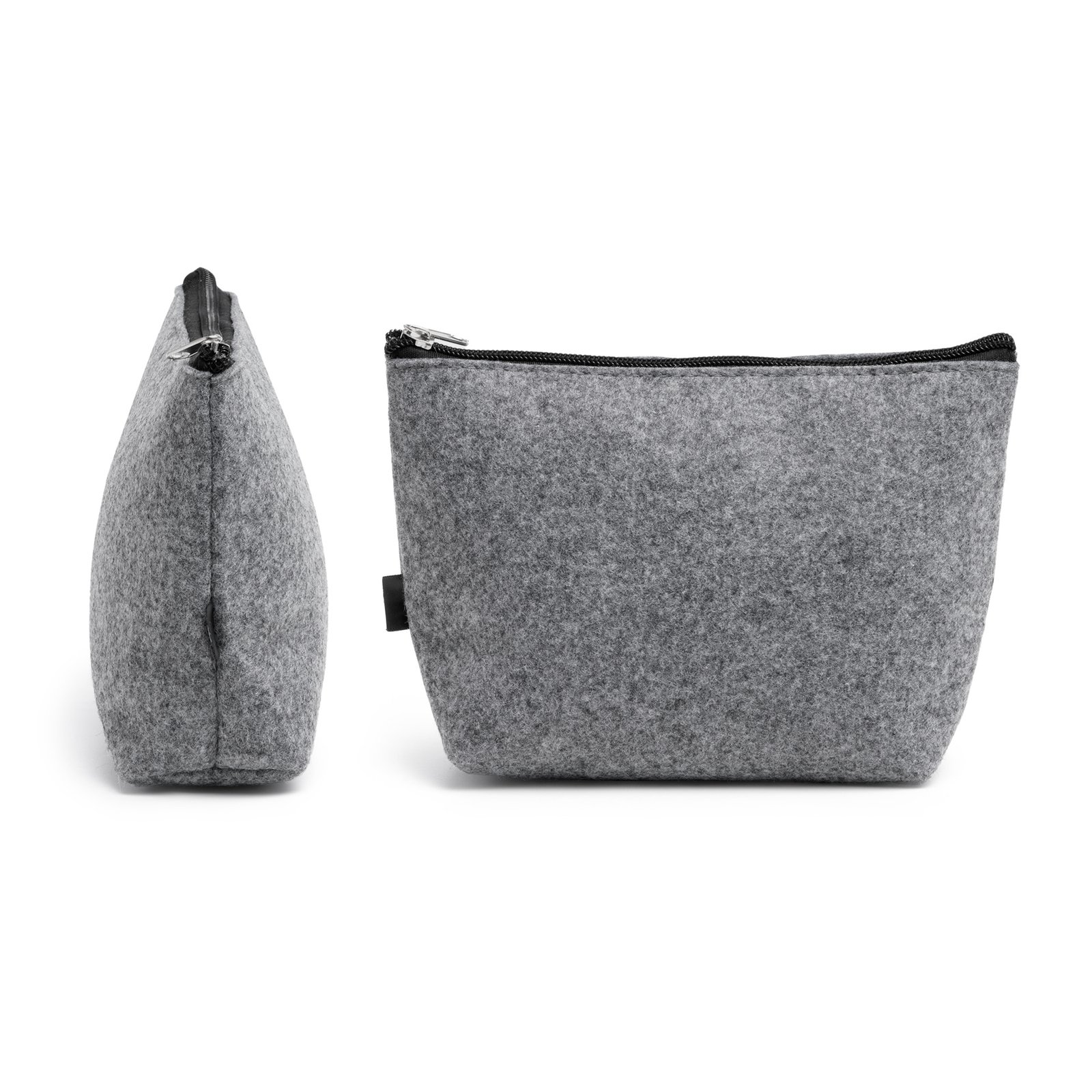 Neceser realizado en fieltro reciclado con diseño vigoré, perfecto para organizar tus productos de uso personal de manera sostenible. Con cierre de cremallera y tirador a juego, con un amplio espacio para almacenar tus productos. Una opción sostenible y práctica para organizar tus enseres.