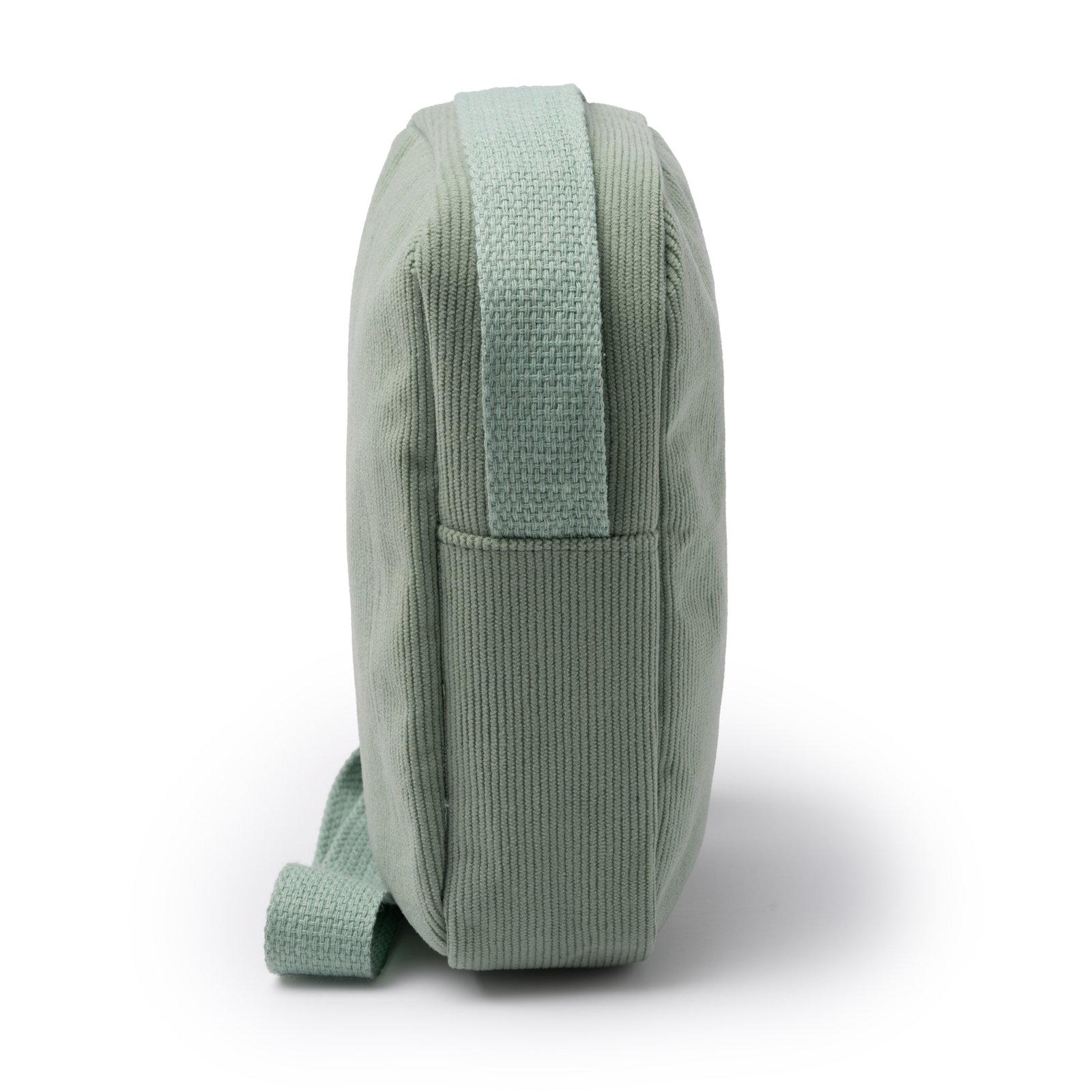 Bandolera realizada en tejido de pana con cierre de cremallera a conjunto en el mismo color. Cinta ajustable a juego y detalles en color metalizado. Es una opción perfecta para el transporte de dispositivos móviles y enseres personales, además de ofrecer comodidad gracias a su cinta ajustable.