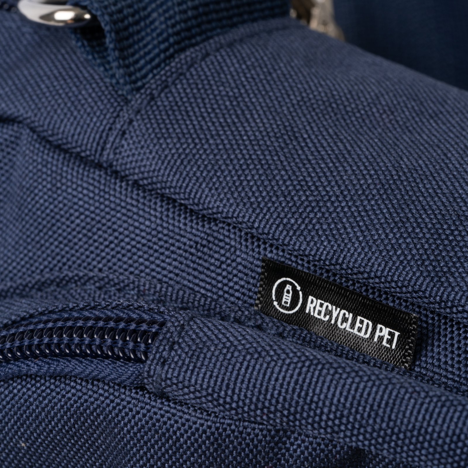 Bandolera realizada en políester reciclado RPET. Cuenta con un compartimento principal con 2 bolsillos interiores y bolsillo frontal, además de