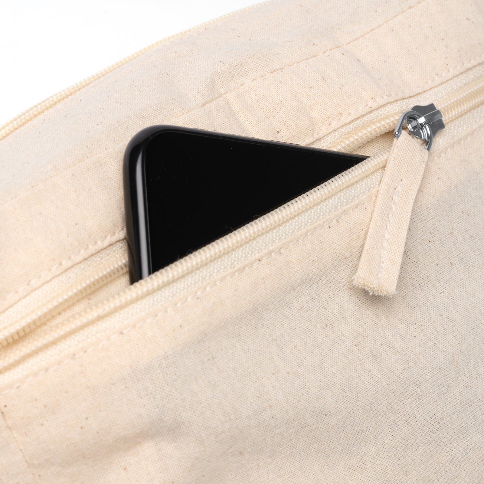 Neceser 100% algodón 150 g/m² con cierre de cremallera. Doble bolsillo, principal y lateral.