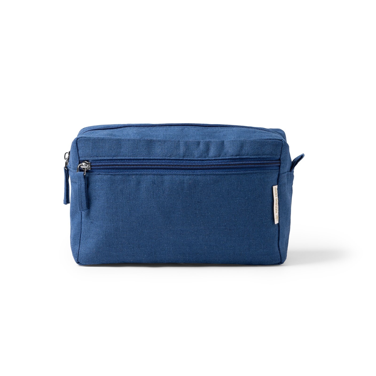 Neceser multiusos realizado en tela de cáñamo. Compartimento principal y bolsillo frontal con cierre de cremallera y tirador a juego. Idóneo complemento para llevártelo de viaje.