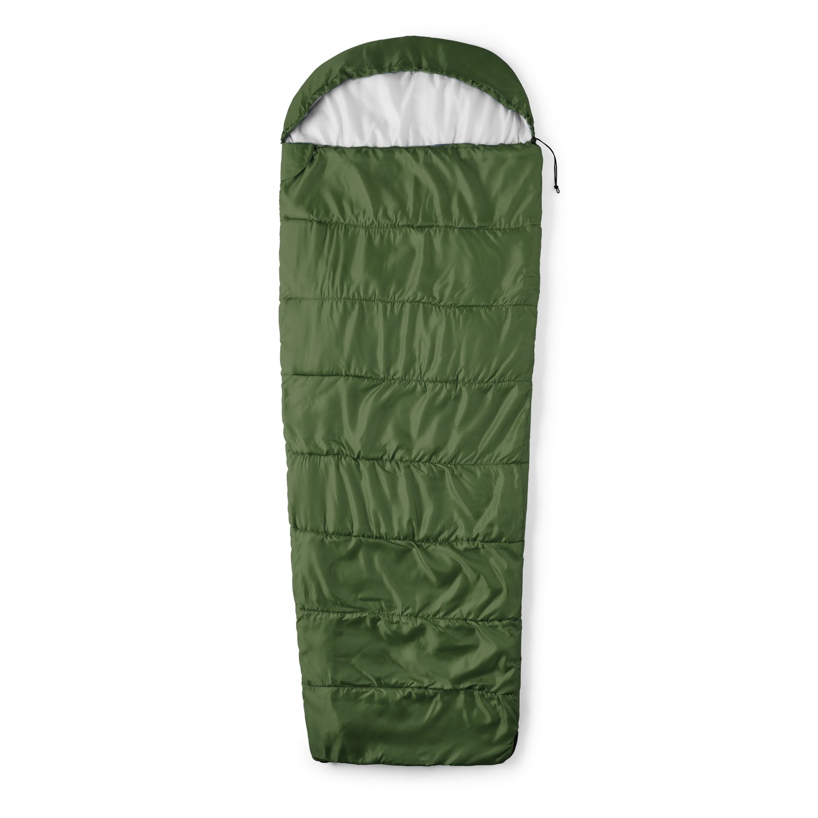 Saco de dormir acolchado realizado en políester reciclado. Cremallera de apertura completa. Incluye funda de transporte a juego.