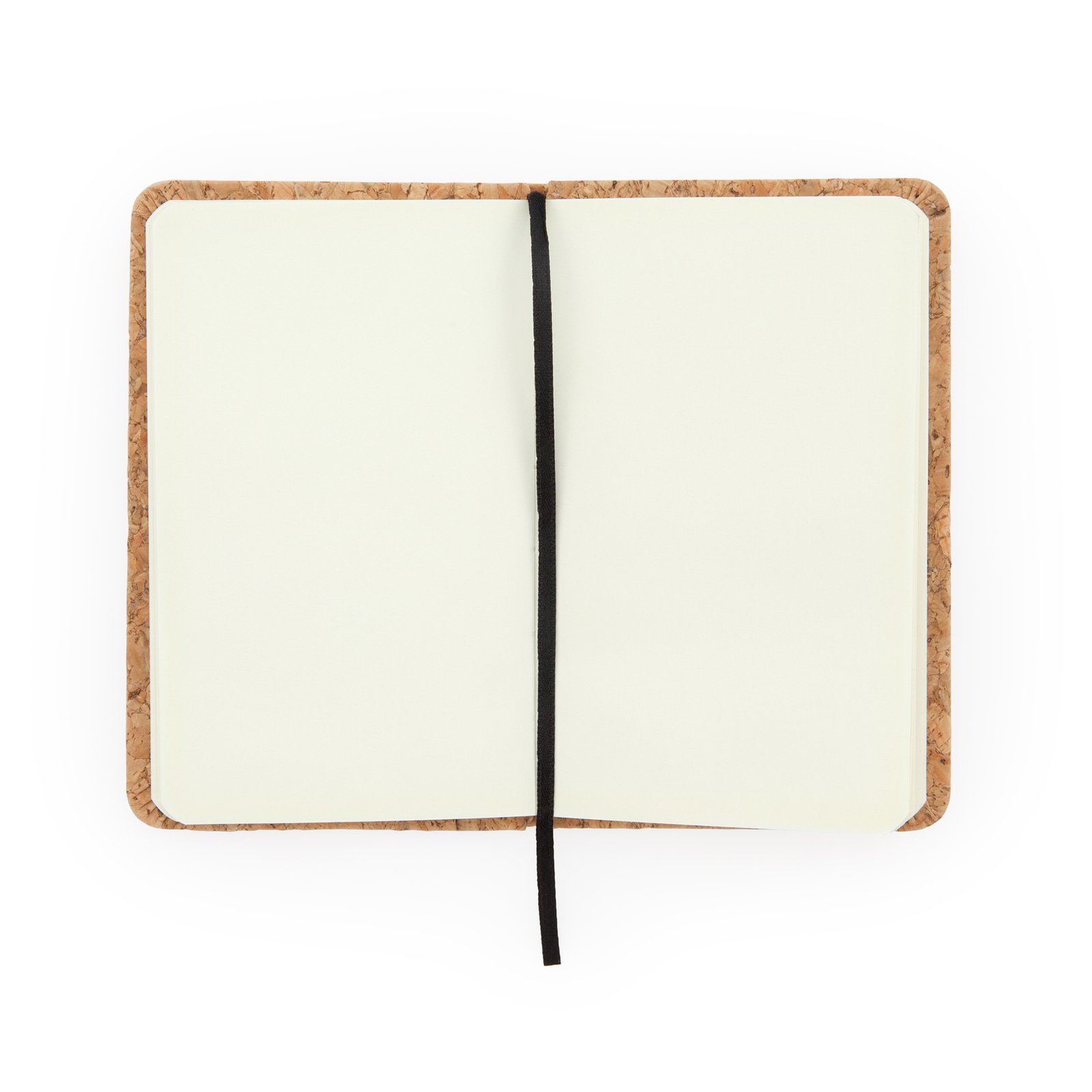 Bloc de notas A6. Tapa rígida de corcho natural. Marcapáginas y banda elástica. 80 hojas lisas.
