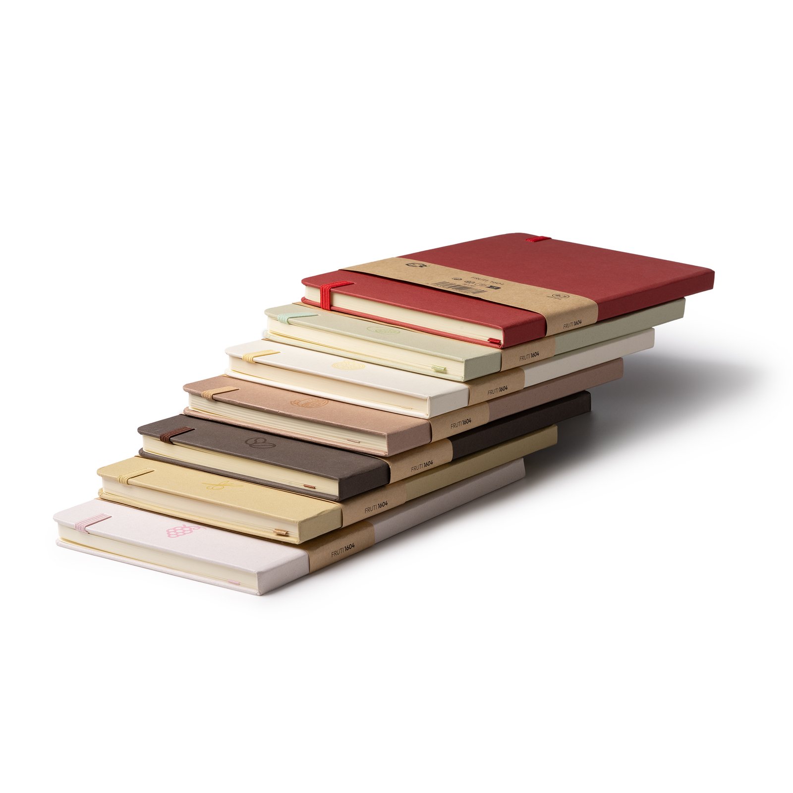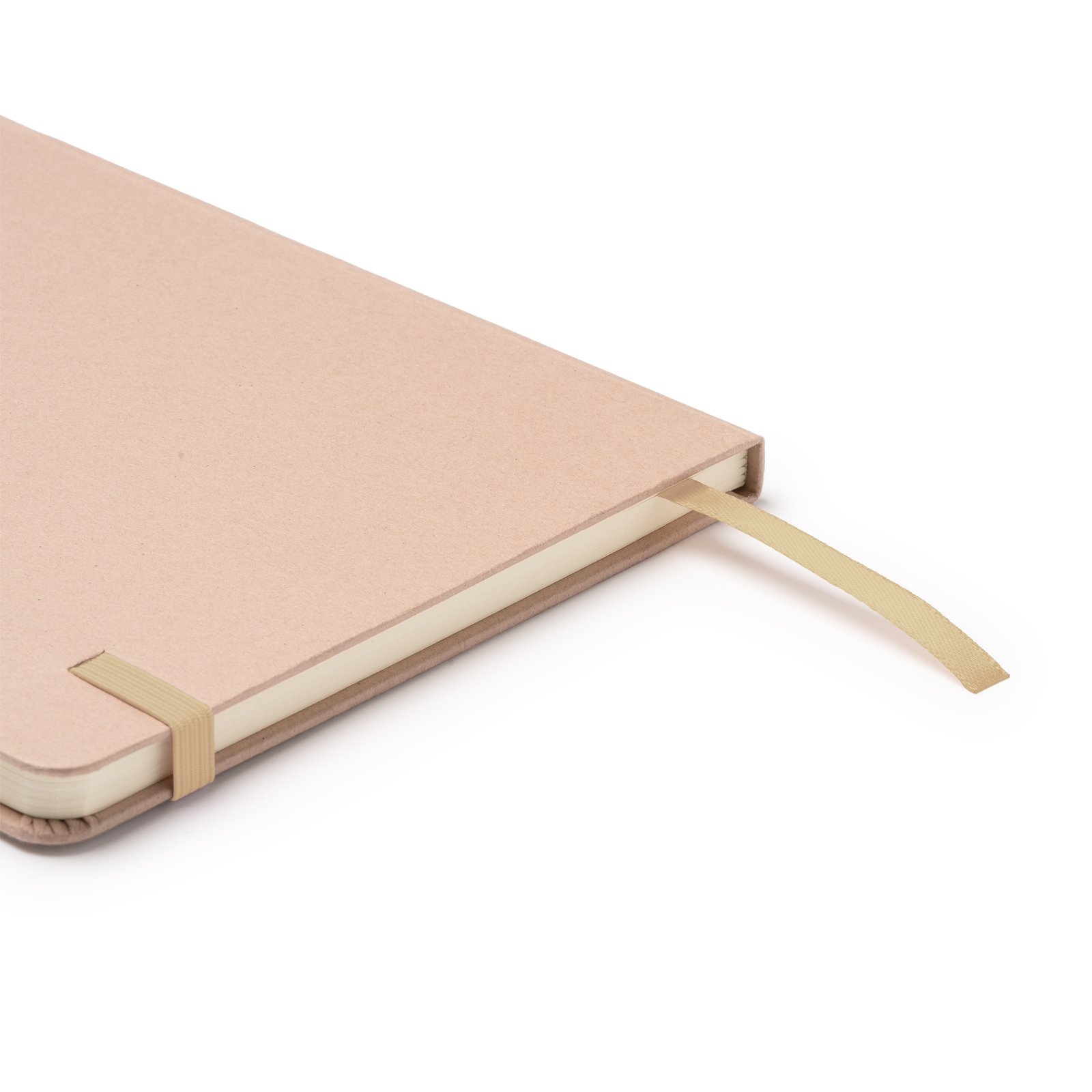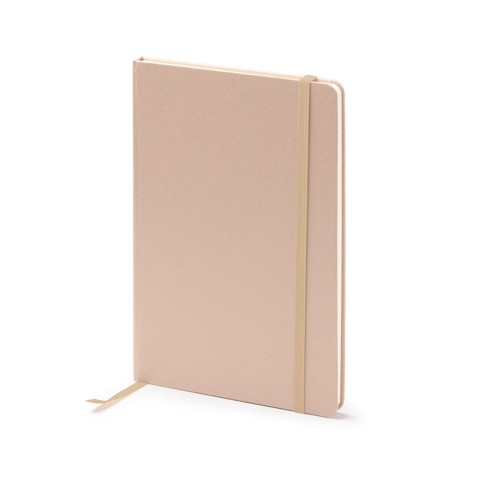 Bloc de notas tamaño A5 con tapas duras elaborado a partir de restos de frutas. Incluye marcapáginas y banda elásticas a juego. Interior con 80 hojas a rayas, ideal para tomar notas con un toque ecológico y original.